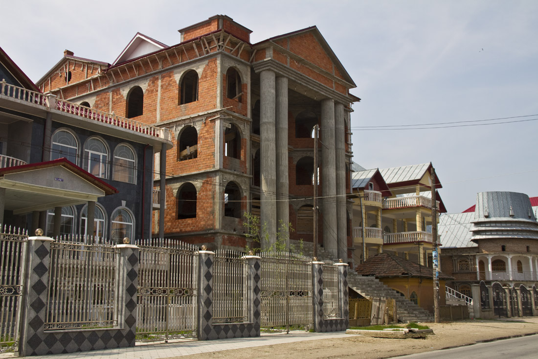 Po drodze zawitałem w miejscu wyglądającym na pochodzące z zupełnie innej rzeczywistości. Niemal sto procent populacji Buzescu stanowią Romowie. I mają swój specyficzny styl mieszkania… Na architekturę miasteczka składają się właściwie nie domy, lecz pałace, każdy jeden większy i wspanialszy od sąsiedniego. Po Rumunii krążą różne historie na temat sposobu sfinansowania budowy tych konstrukcji – narkobiznes, handel kobietami, kradzieże… Według miejscowych podań w każdej rezydencji mieszka po sto osób, bez mebli i bez toalet, słowem ważny jest jedynie przepych na zewnątrz. Jak jest naprawdę nie udało mi się dowiedzieć, języka romskiego nie jestem w stanie zasymulować…