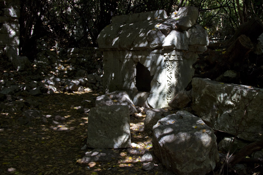 The ruins – dispersed here and there in big amounts on mountain slopes – hellenist, roman, osman; amphitheatre, baths, tombs, houses, castles… You can access most of them freely, walk on them, jump, hide inside, make parties… Lots of fun but after a couple of days you get used to it or even bored. Then comes the time for… Chimera!