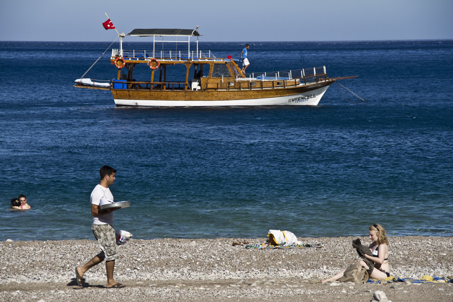 Do Olympos z Alanii można się dostać tylko metodą łączoną: autobus do Antalii, minibus do knajpy przy trasie głównej, parę kilometrów od celu, potem mniejszy minibus do samego Olympos. Kierowca na ostatnim etapie postanowił czekać, aż auto całkiem się zapełni pasażerami. Uznałem, że mogłoby trwać dłuższą chwilę i złapałem stopa do samej wioski turystycznej.