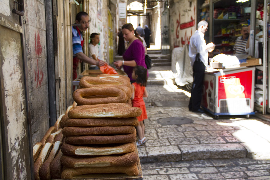 Ostatecznie realizuję mój plan zwiedzenia wszystkich możliwych uliczek Starego Miasta, a najciekawszy moment tejże wędrówki zaliczam, gubiąc się w gąszczu przejść między domami z kamienia i wychodząc … na dachu jednego z budynków. Okazuje się, że system przejść po dachach jest całkiem rozbudowany i tym sposobem zyskuję bardzo interesujący punkt widzenia na Jerozolimę. Polecam!