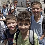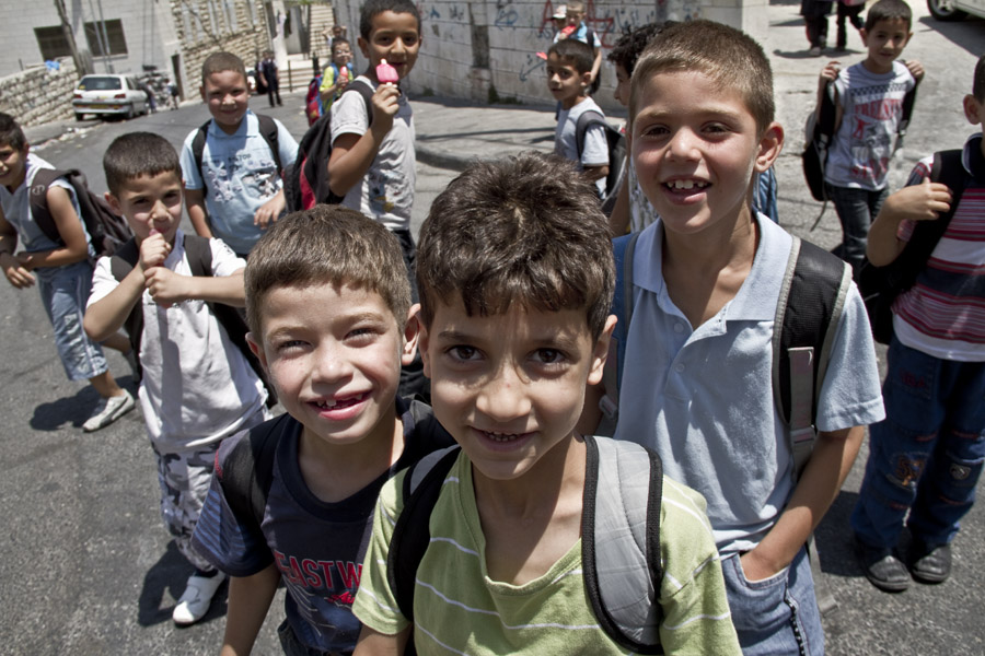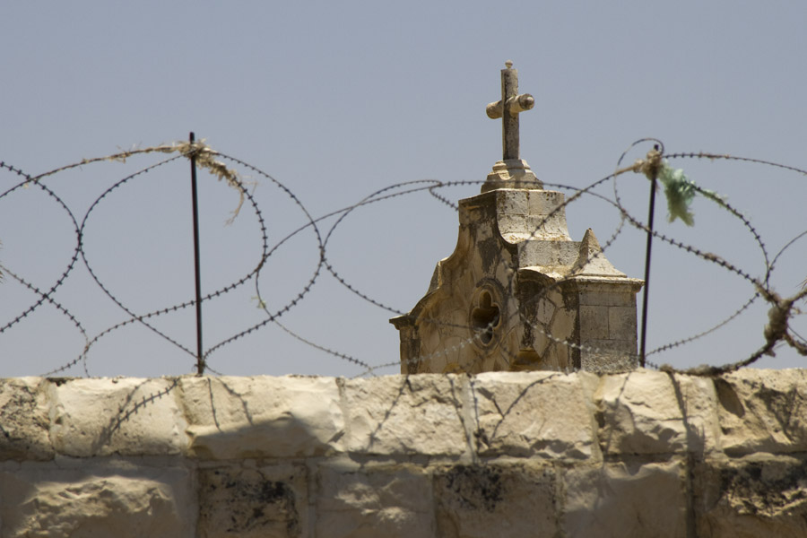 Za dnia natomiast wybieram się na wzgórze oliwne (wspaniały widok na Stare Miasto!) i wykonuję obchód licznych świątyń tam zgromadzonych (wszystkie ogrodzone drutem kolczastym i.. zamknięte w porze lunchu). Nie obywa się bez interakcji – tym razem niespecjalnie miłej – z armią palestyńskich dzieci, kończących właśnie zajęcia szkolne. Sympatyczne z początku spotkanie kończy się rozszarpaniem na strzępy mojej karimaty, zniszczeniem butelki z wodą i próbą kradzieży aparatu… Przejeżdżający obok miły pan kręci z uśmiechem głową – Niesforne dzieciaki! – i odjeżdża. W końcu któryś z przechodni lituje się nad biednym turystą i karci je kilkoma ostrymi zdaniami. Uff, uratowany!