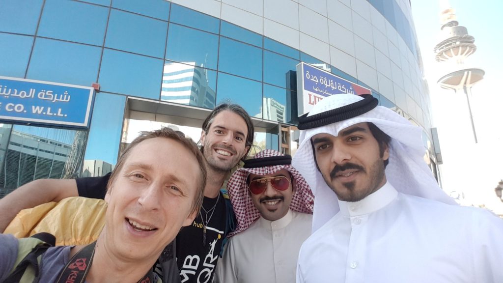 A selfie with two locals and Völgo Fôlak, a Spanish traveler