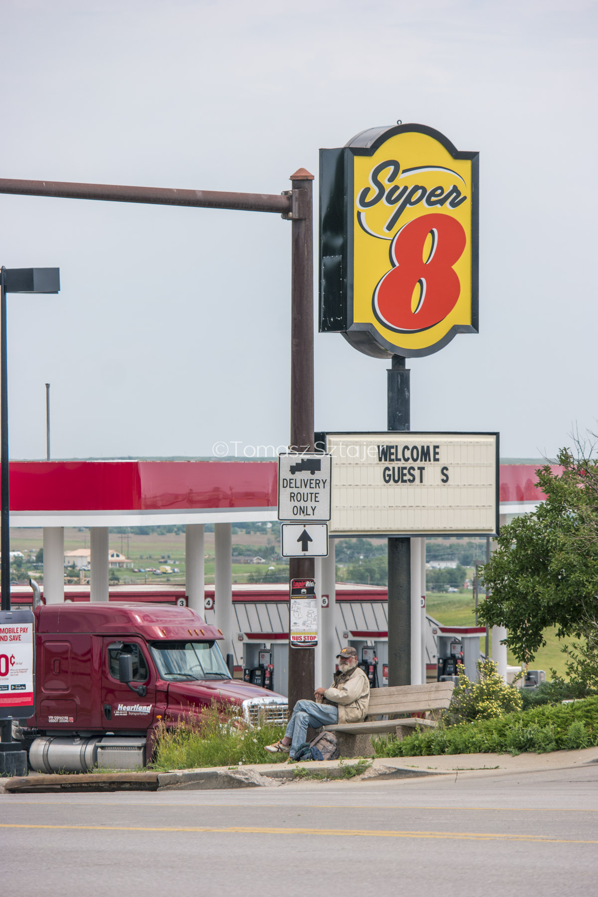 Nie będę się tutaj zanadto rozpisywał nad przebiegiem podróży – myślę, że to, co ważne, widać na zdjęciach. Wspomnę tylko, za to głośno i wyraźnie, że podróż autostopem po Stanach to doświadczenie absolutnie konieczne do zaliczenia… W skrócie – autostopowicz to tutaj VIP, jeśli kierowca akurat nie jedzie w daną stronę, to zapyta, czy mamy zapas wody… Albo nie zapyta, tylko od wręczy nam butelkę – świeżo zakupioną z myślą o nas, chłodniutką… Albo zaproponuje jedzenie… Albo pieniądze (starałem się odmawiać, ale czasami po prostu się nie da: jeden facet podwiózł mnie na stację benzynową, pożegnaliśmy się, odjechał… i po parunastu minutach wrócił, wręczając mi garść dolarów i przepraszając, że wcześniej mi nie dał, ale nie miał ze sobą gotówki i musiał po nią pojechać do domu… trudno w takim przypadku odmówić:)… Może nas także spotkać  – i to mnie totalnie rozwaliło – modlitwa kierowcy o bezpieczeństwo naszej podróży.  Nawet policjanci są pomocni i udzielają podwózki (poza tymi w Illinois, niektórzy z nich zbyt ściśle przestrzegają przepisów i w ogóle zabraniają autostopować – trzeba się wtedy przyczaić na stacji; w każdym stanie przepisy i stosunek do nich stróżów prawa są inne). W dodatku w wielu stanach mieszka wielu Polaków, bardzo chętnie pomagających rodakom. Polecam też korzystanie z truckers’ lounges, w których można się wygodnie przekimać, a nawet wziąć prysznic (za darmo, jeśli wydębimy od tirowca karnet, których zazwyczaj ma w nadmiarze).