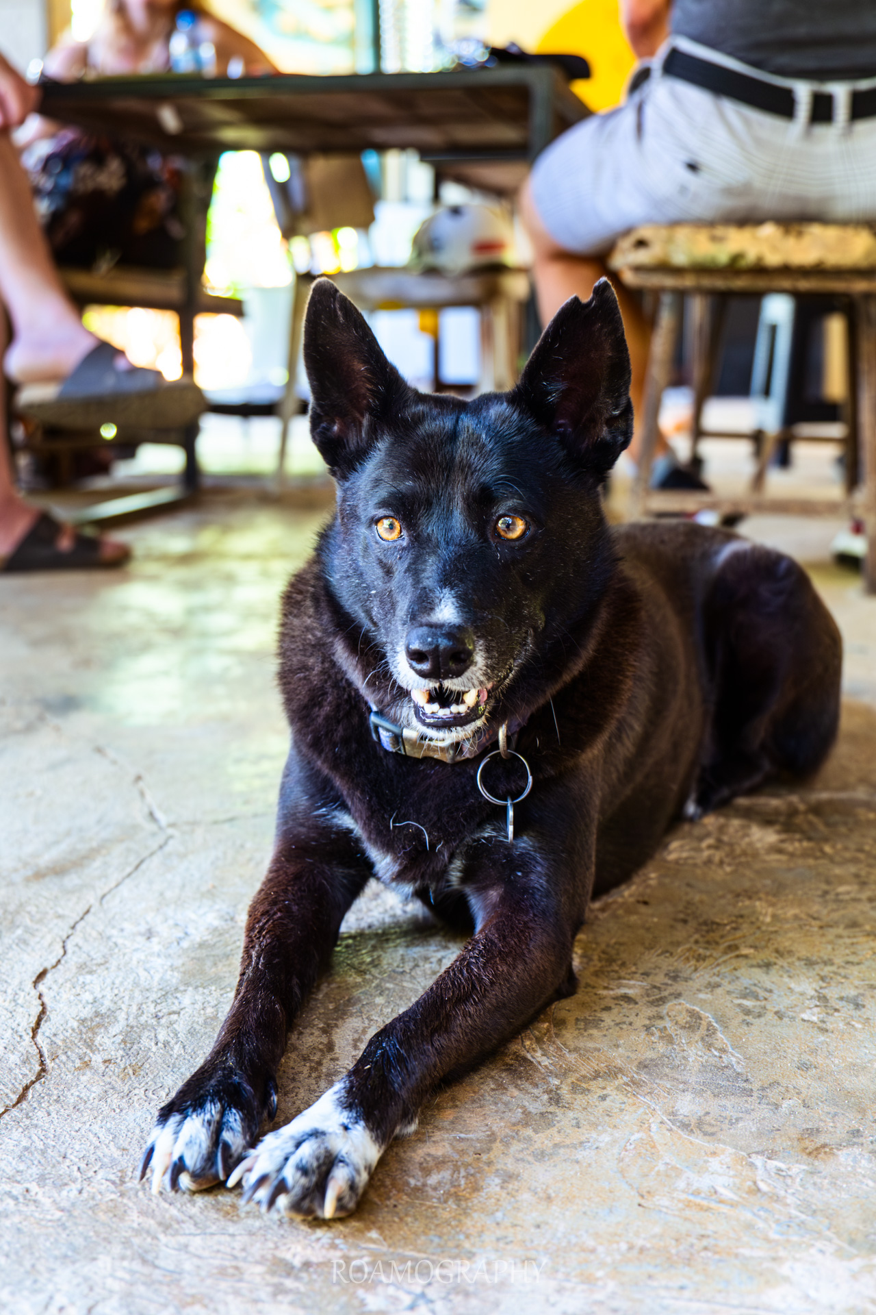 And the stay on Koh Chang is all about vacations with dogs cared for by the Happy Dogs Koh Chang organization, led by the tireless Martina, supported by regular and occasional helpers. And when off work: exploring the island by scooter, lounging on beaches (the further from the tourist epicenter of White Sand Beach – Klong Prao, the better), having delicious cheap meals in small eateries, and spotting hornbills (basically Asian toucans, but even more wacky in terms of beak design). It’s also about avoiding police patrols looking for “farangs” to squeeze for a bribe. Sadly, it is also home to the regrettable “elephant tourism” (these animals never historically lived on the island; they were brought here recently by local businessmen)—bathing the shackled gentle giants, selfie sessions, and even riding on their backs, all for the amusement of supposedly civilized tourists from the so called West. So shameful!