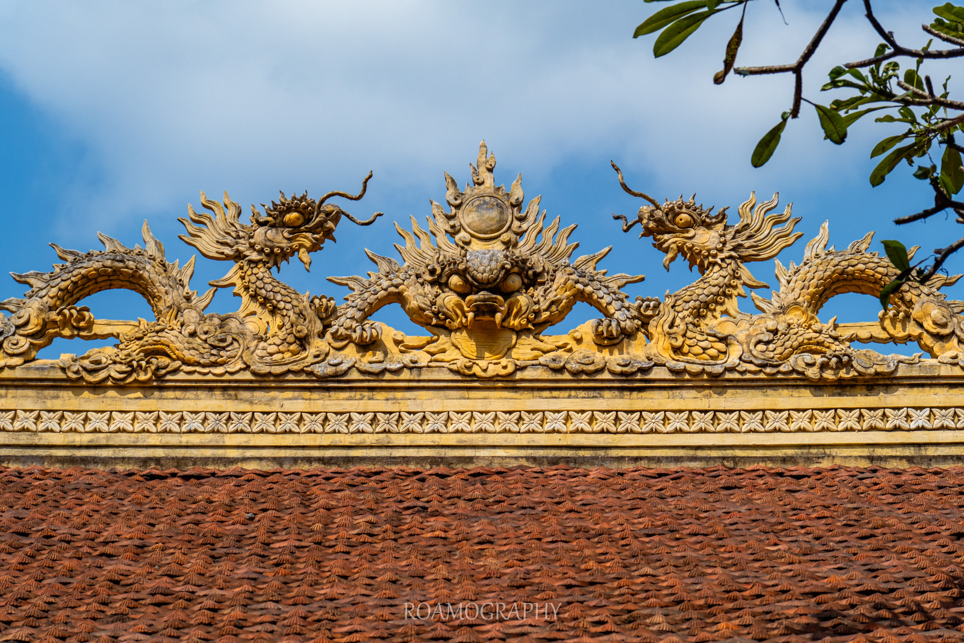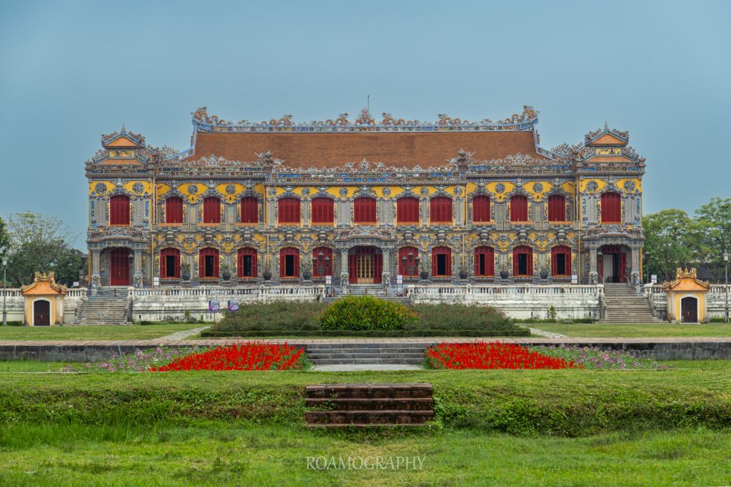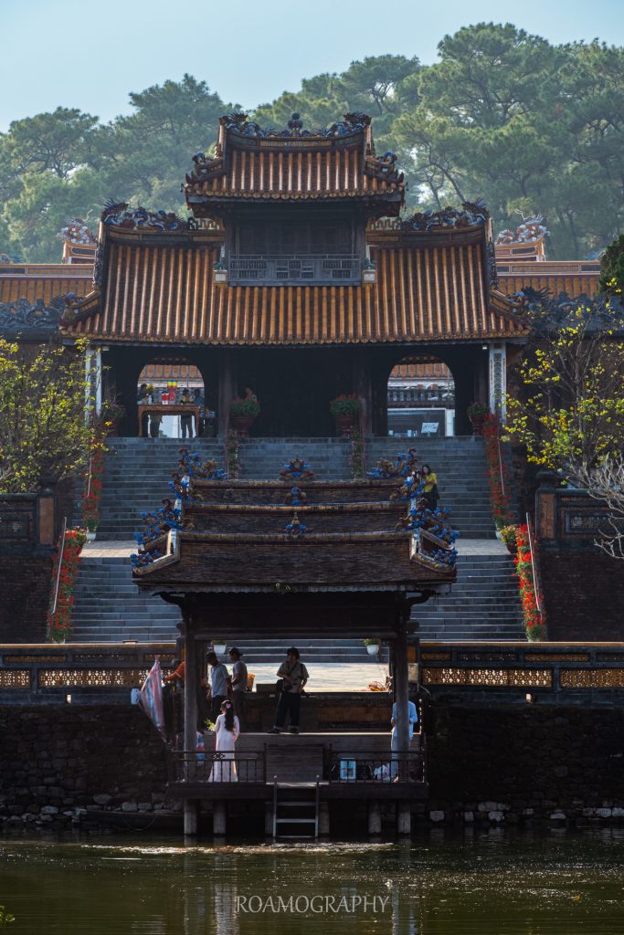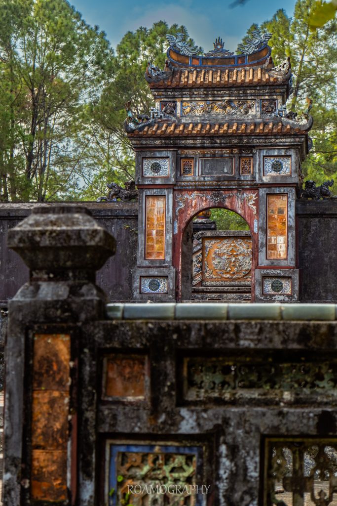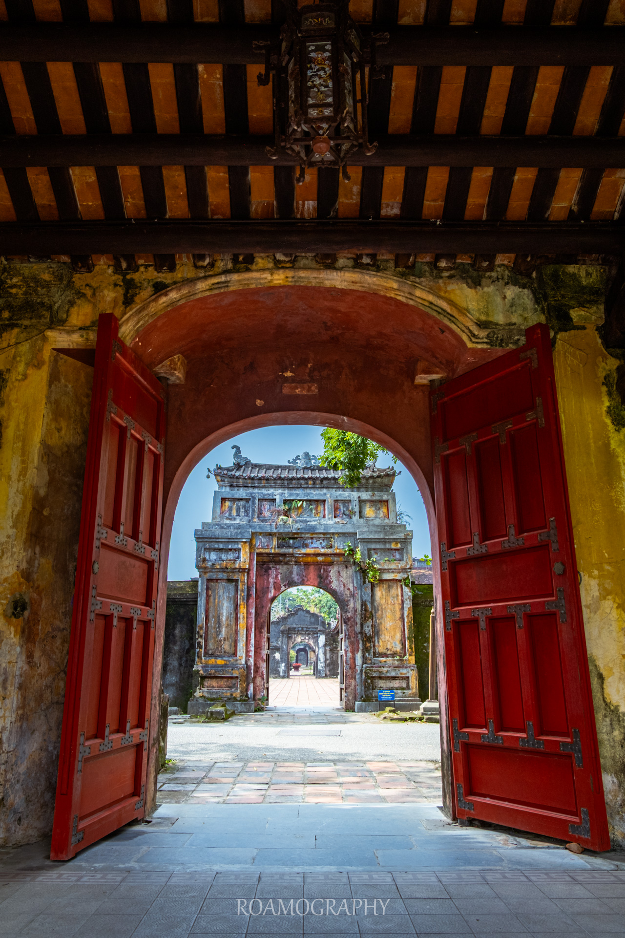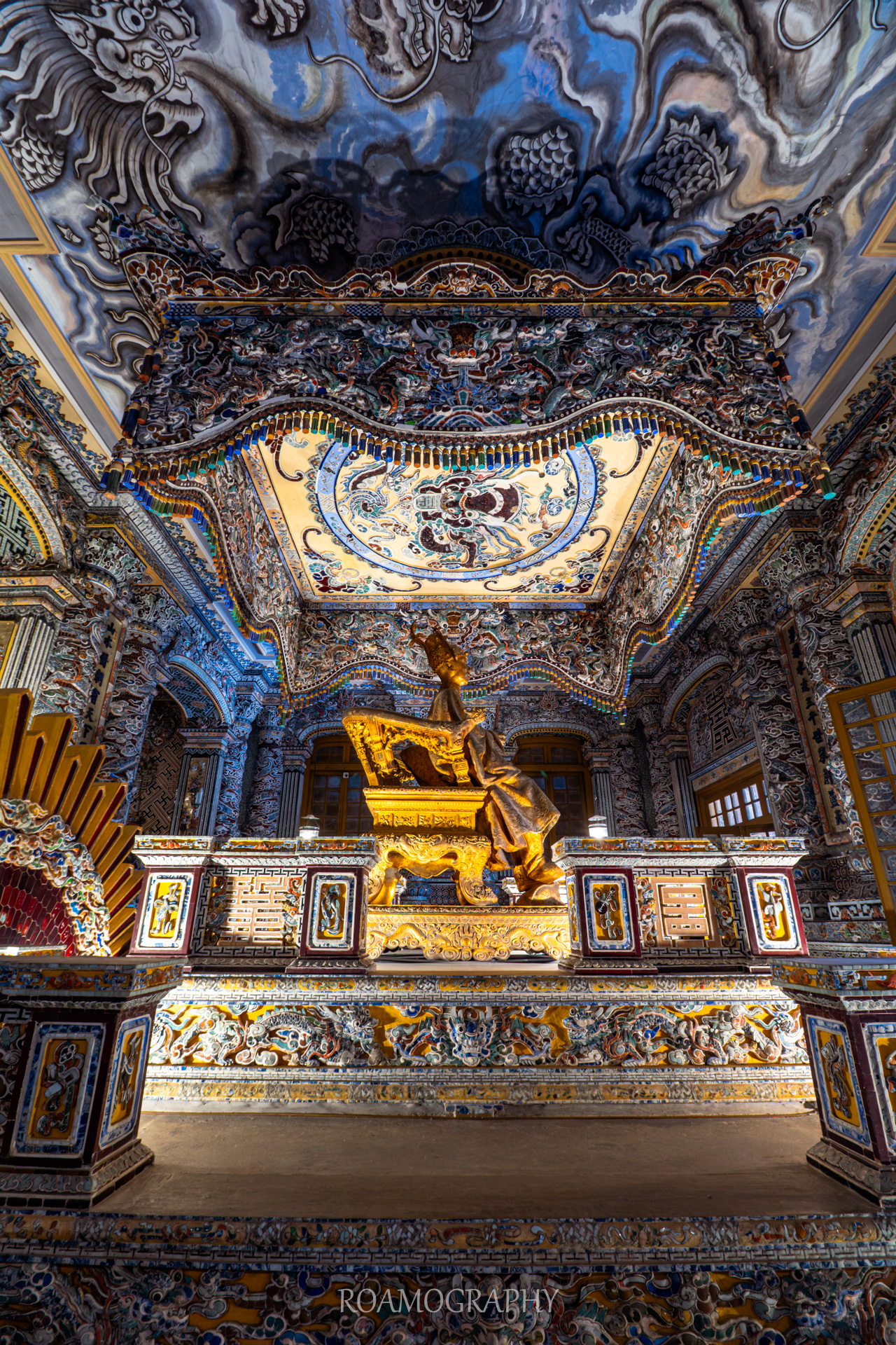 Nieco dalej na północ znajduje się miasto Hue, słynące z otoczonego murami Cesarskiego Miasta, z nie byle jakimi budynkami pałacowo-świątynnymi i imponującymi bramami. Oprócz tego, wokół Hue rozrzuconych jest sporo grobowców wietnamskich władców i innych możnych – moim faworytem jest kompleks grobowcowy Khai Dinh z kompletnie odjechaną, wyłożoną ceramiką salą, w której spoczywają szczątki cesarza.