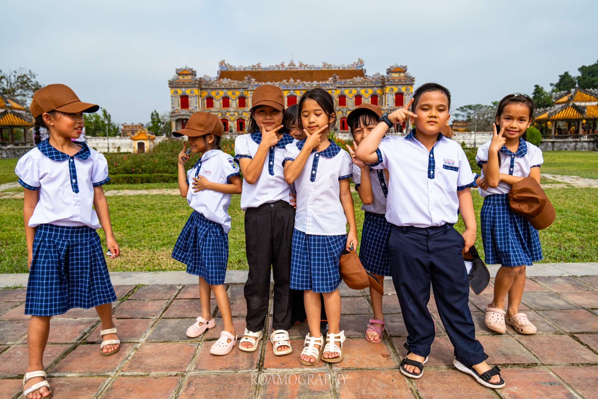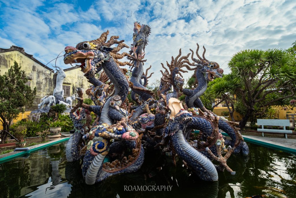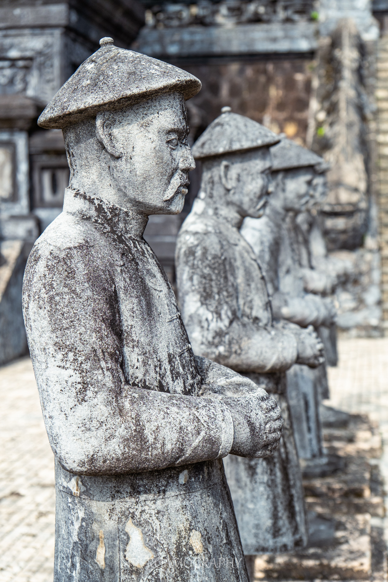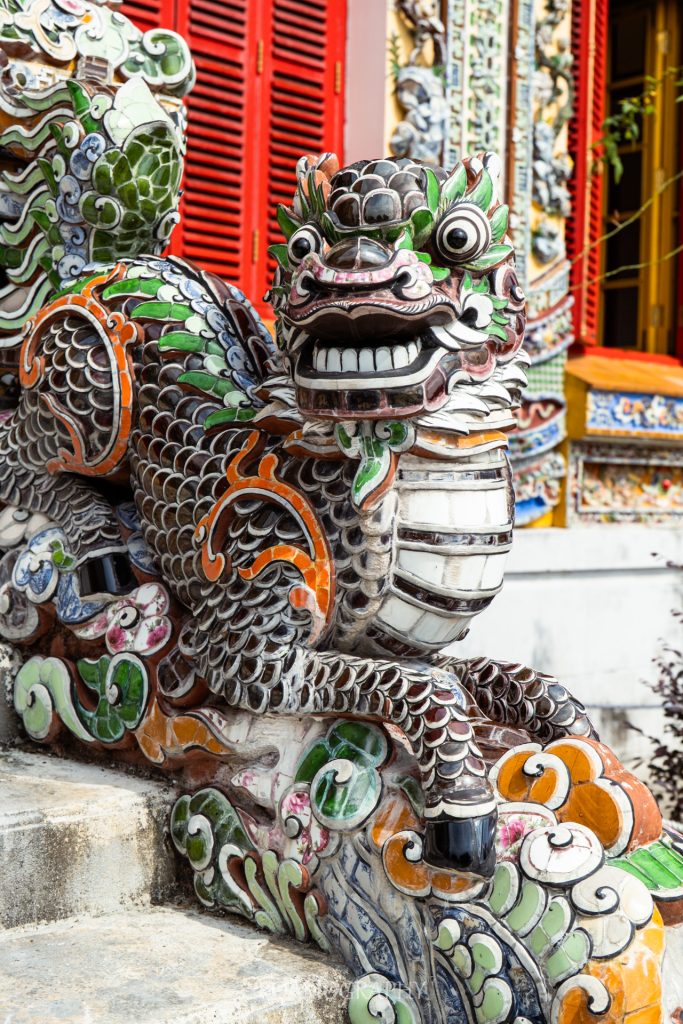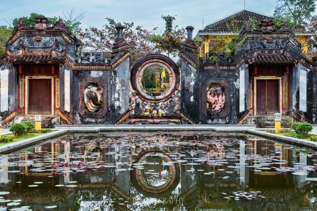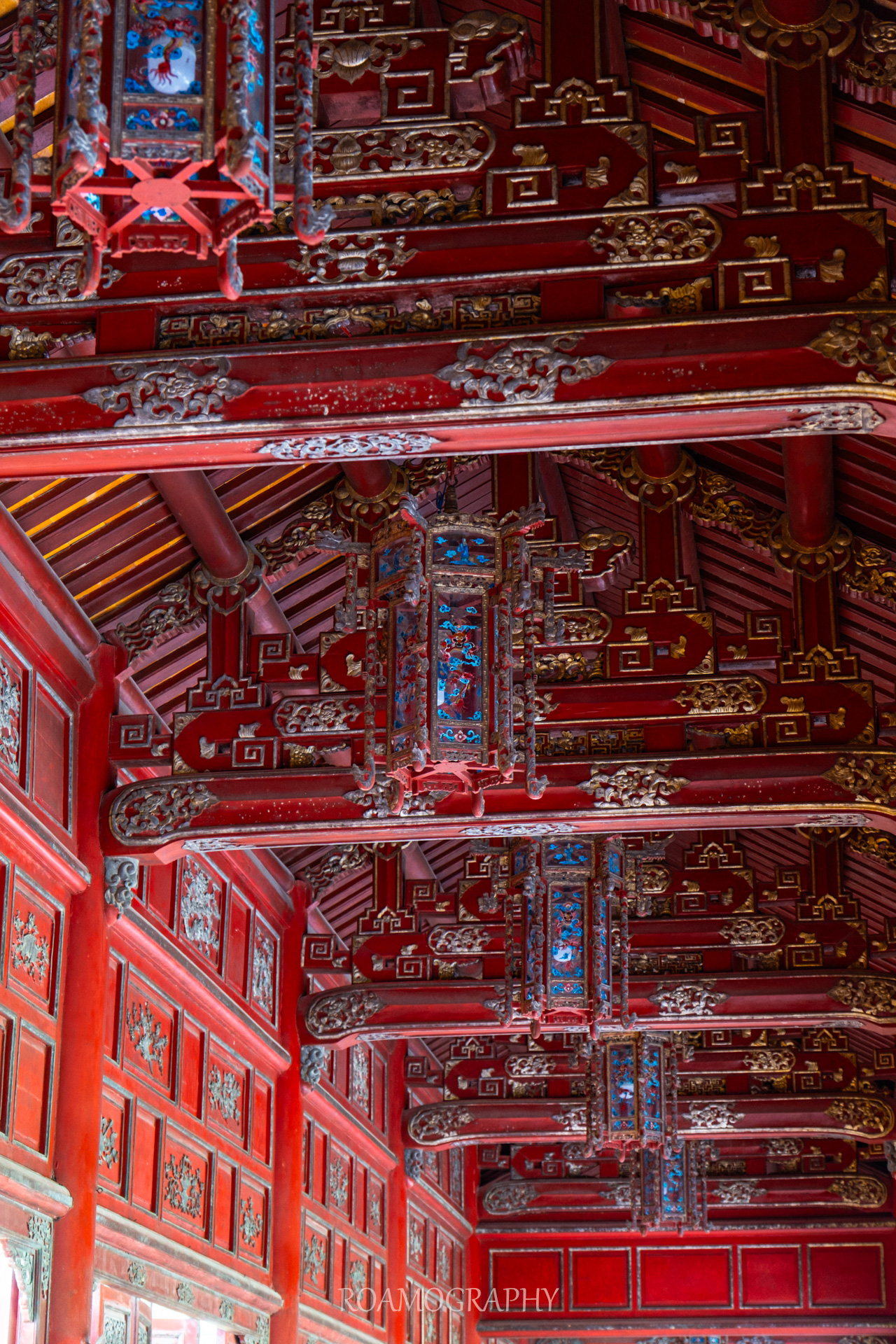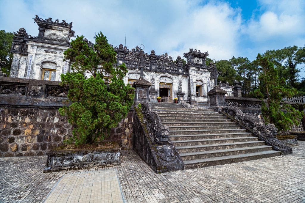 Nieco dalej na północ znajduje się miasto Hue, słynące z otoczonego murami Cesarskiego Miasta, z nie byle jakimi budynkami pałacowo-świątynnymi i imponującymi bramami. Oprócz tego, wokół Hue rozrzuconych jest sporo grobowców wietnamskich władców i innych możnych – moim faworytem jest kompleks grobowcowy Khai Dinh z kompletnie odjechaną, wyłożoną ceramiką salą, w której spoczywają szczątki cesarza.