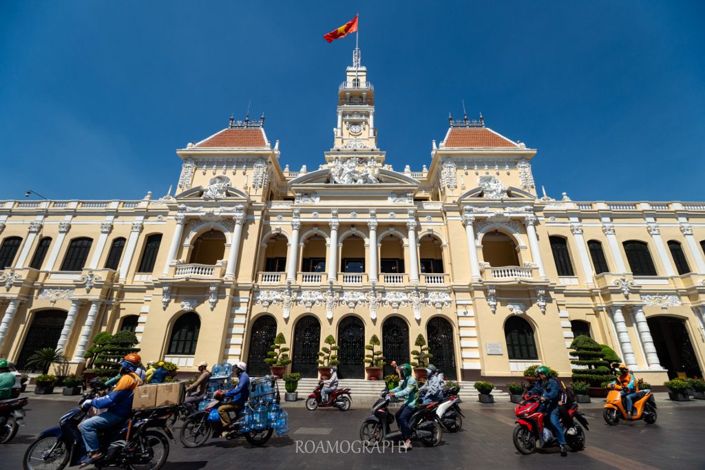 W Ho Chi Minh City (dawniej Sajgon) najtańsze noclegi można znaleźć w dość szemranej dzielnicy. Trafiam do domu starszej pani z szerokim uśmiechem, skłonnej do lekkiej negocjacji ceny (za to nieskłonnej do sprzątania pokoju – trochę strach włączać światło). Nazajutrz: ogarnięcie wypłaty z bankomatu (w Wietnamie praktycznie nie ma możliwości płacenia za zakupy zagraniczną kartą), wizyta w Decathlonie i zwiedzanie atrakcji turystycznych. Moje ulubione miejsce to Ho Chi Minh City Museum, które stara się przyciągać średnio interesującymi gablotami oraz autentycznymi czołgami i samolotami, ale jego największą wartością są tabuny młodych par i influencerów urządzających sobie sesje fotograficzne w zabytkowych wnętrzach.