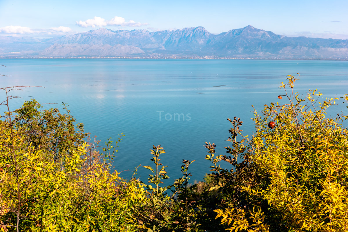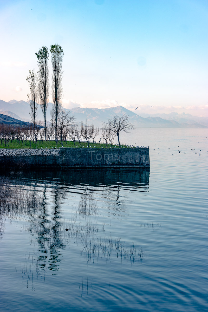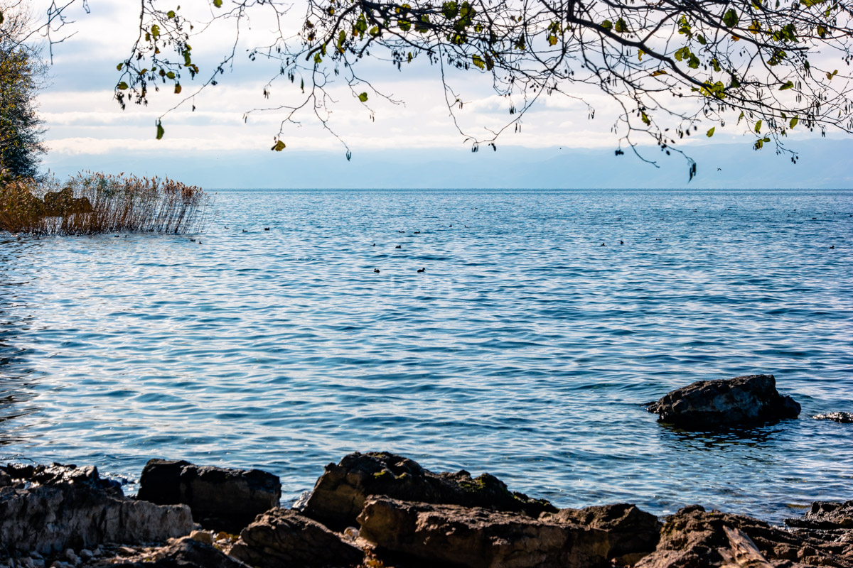 After returning to Ohrid (btw, the road between Skopje and Ohrid provides quite some views!) I hop back on my bike and cycle in the direction of Greece. I make a little stop on the way at Prespa lake, so peaceful and calm this time of the year… And I pick up a few apples from local gardens…