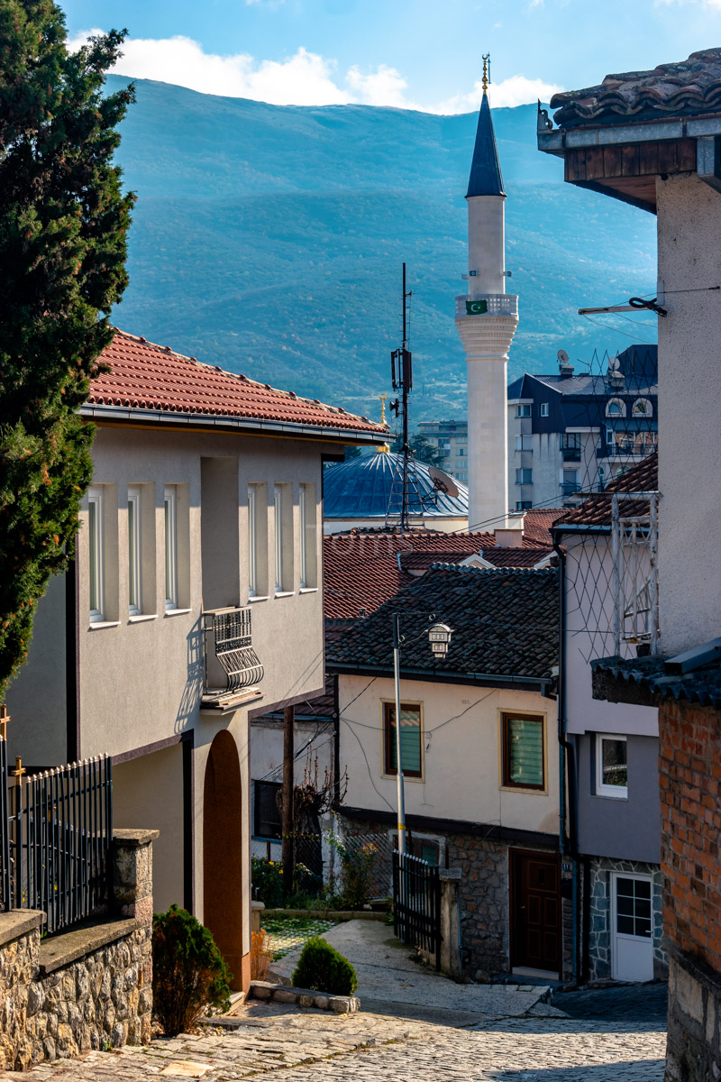 Do Bitoli przebijam się przez śnieg (całe szczęście – na krótkim odcinku) i tym bardziej marzę o ciepłej Grecji (taką wizję wtłoczyłem sobie do głowy i wizja ta mnie napędza do dalszego pedałowania). Po dotarciu robię krótką przechadzkę po mieście, ale to chyba góry je otaczające mają największą wartość turystyczną. Próbuję się zachwycić lokalną architekturą ale bardziej jest mi smutno, że jest tak bardzo zaniedbana…