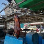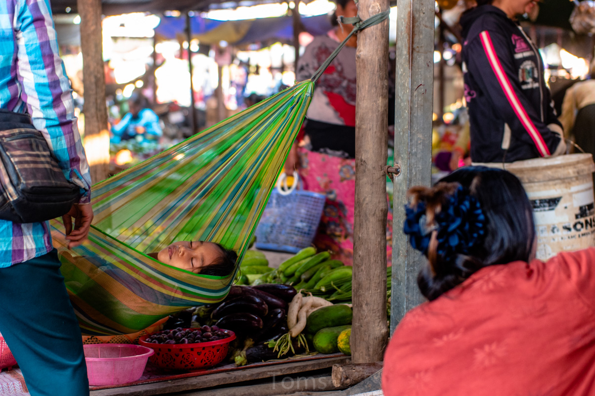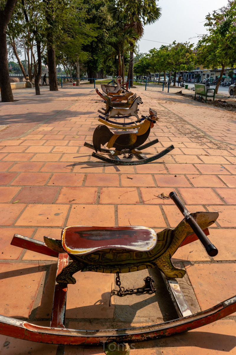 First stop for real – Battambang. Here I find the almost dry Sangker river (they weren’t joking about dry season! Tourist boats that connect with Siem Reap can hardly pull through, grinding against the shallow bottom; it is plain to see that the river banks are being redesigned and remodelled too, which results in a huge mess), a couple of temples (including the most famous one – Ek Phhom, older than Angkor Wat), market places… And the most surprising accommodation in Lucky Hostel, where the low price includes… a swimming pool, neatly hidden in the reception area!