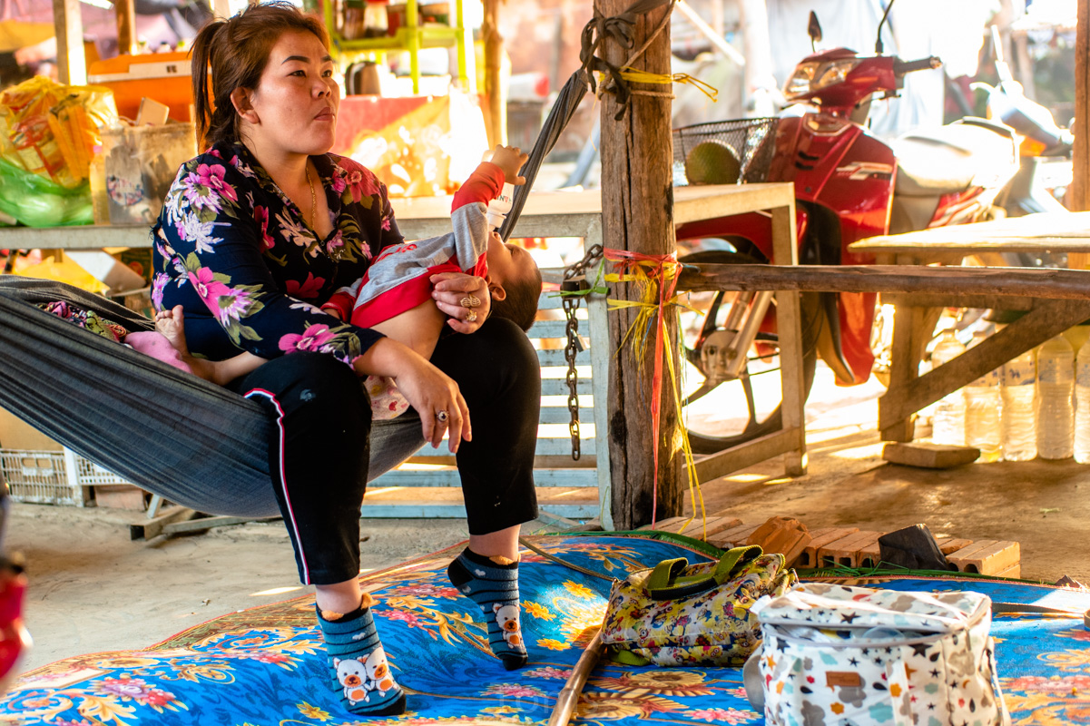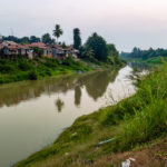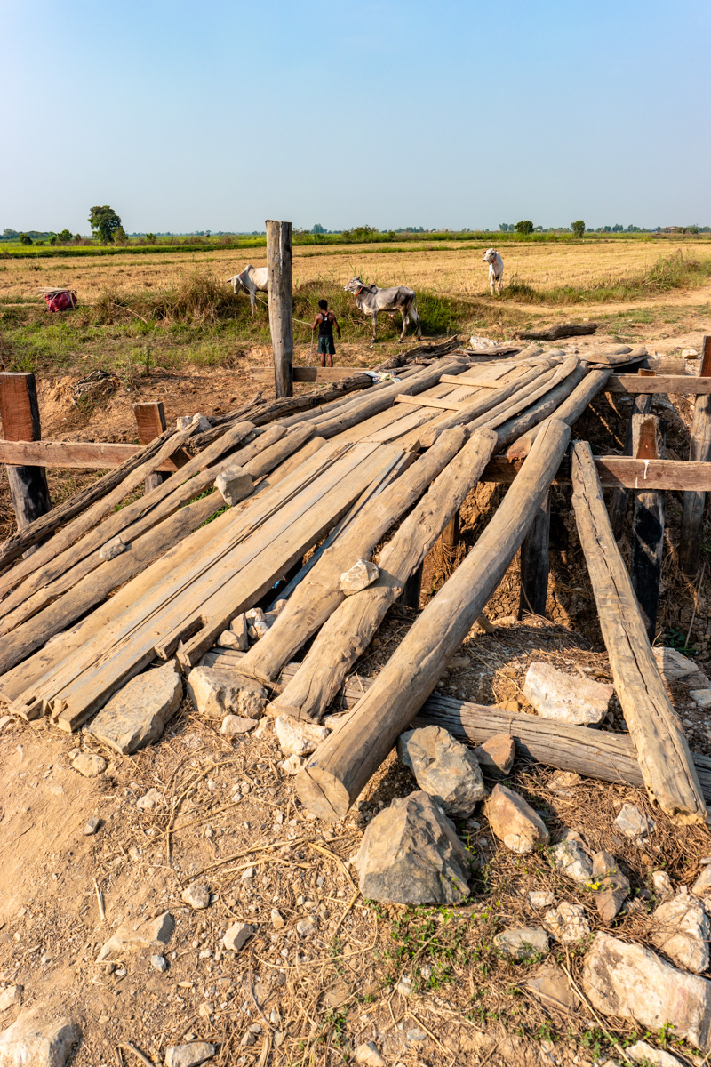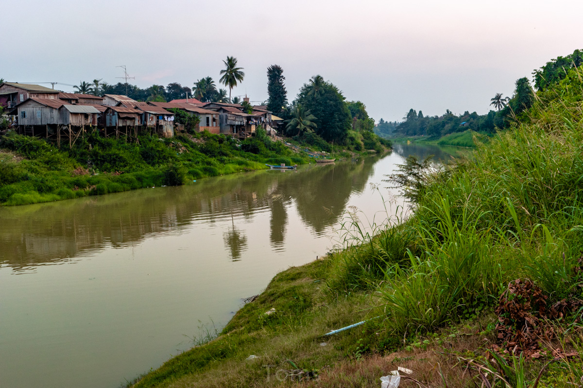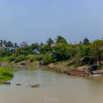 Najłatwiej byłoby się wybrać do Siem Reap autobusem… Albo (droższą i wolniejszą) poranną łodzią turystyczną… Ale ja postanowiłem, czy i jak daleko da się dojechać rowerem. I da się – dosyć daleko. Niemniej jednak w pewnym momencie muszę zagadać z mieszkańcami nadrzecznego miasteczka, w którym wszelkie drogi się urywają i wynająć łódkę do kolejnego miasteczka, z którego można jechać dalej. Koszt: 7 USD, choć prawdopodobnie dałoby się ostrzej negocjować. A potem – jazda przez pola i kłęby kurzu, do drogi głównej i aż do samego Siem Reap.