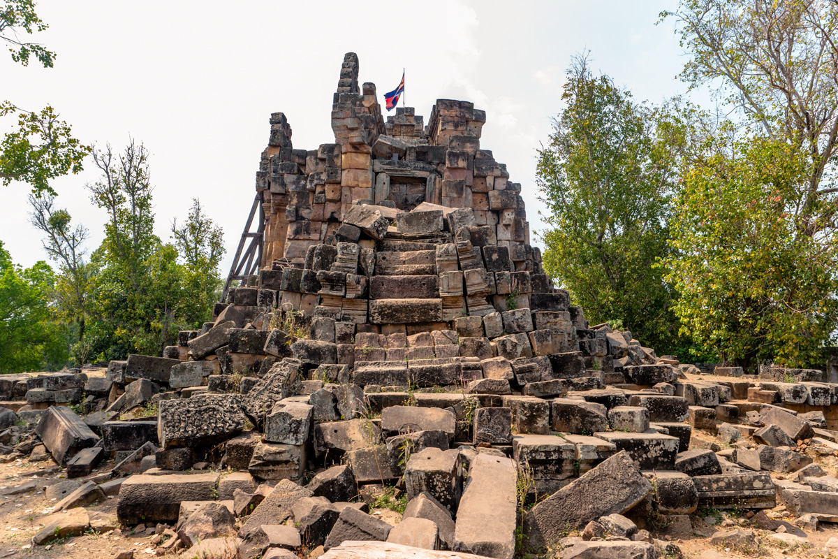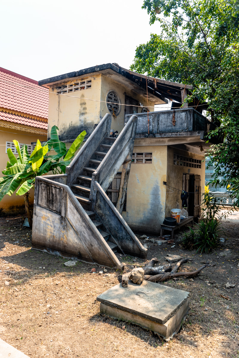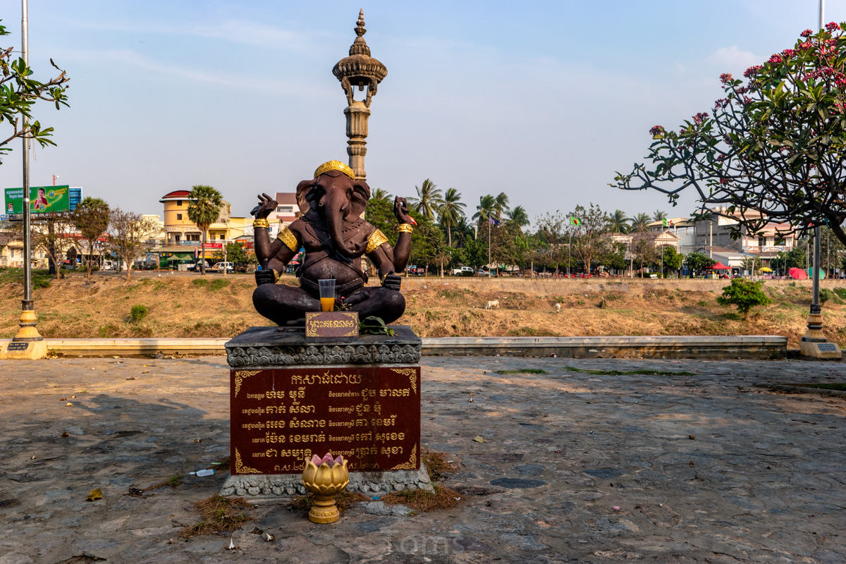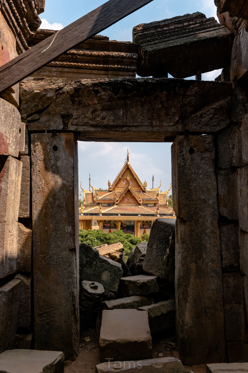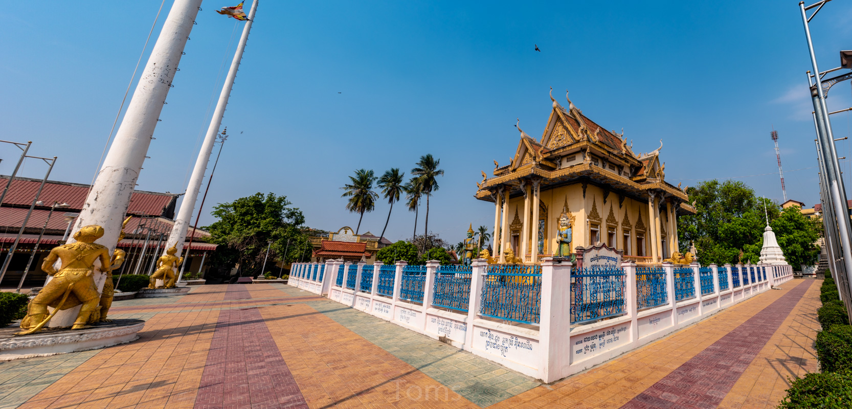 Pierwszy prawdziwy przystanek… Battambang. A w nim prawie wyschnieta rzeka Sangker (pora sucha jest naprawdę sucha! Turystyczne łodzie, kursujące do Siem Reap ledwie wyrabiają, szorując tu i ówdzie po dnie; widać również, że jesteśmy w środku procesu przekonstruowania nabrzeża, co owocuje straszliwym rozgardiaszem), parę świątyń (w tym ta najsłynniejsza, Ek Phnom, starsza od kompleksu Angkor Wat), targowiska… I najbardziej zaskujący budżetowy nocleg w Lucky Hostel, w cenie którego jest… basen, sprytnie ukryty tuż przy recepcji!