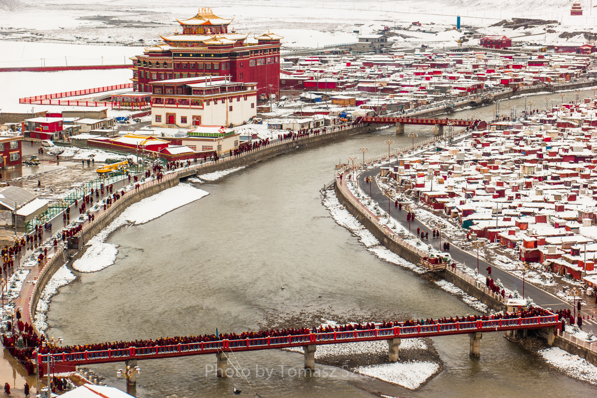 Wrzucam kilka obrazków z jednego z najbardziej niesamowitych miejsc, które można odwiedzić w regionie Siczuan: klasztor i świątynia Yarchen Gar (Yaqing Si). Widok wyspy szczelnie zabudowanej mnisimi chatkami z byle czego robi spore wrażenie. Z perspektywy turysty – trochę szkoda, że władze próbują “udoskonalić” mnisie miasteczko, głównie poprzez wyburzanie jego części…