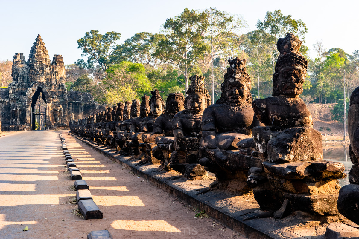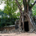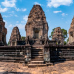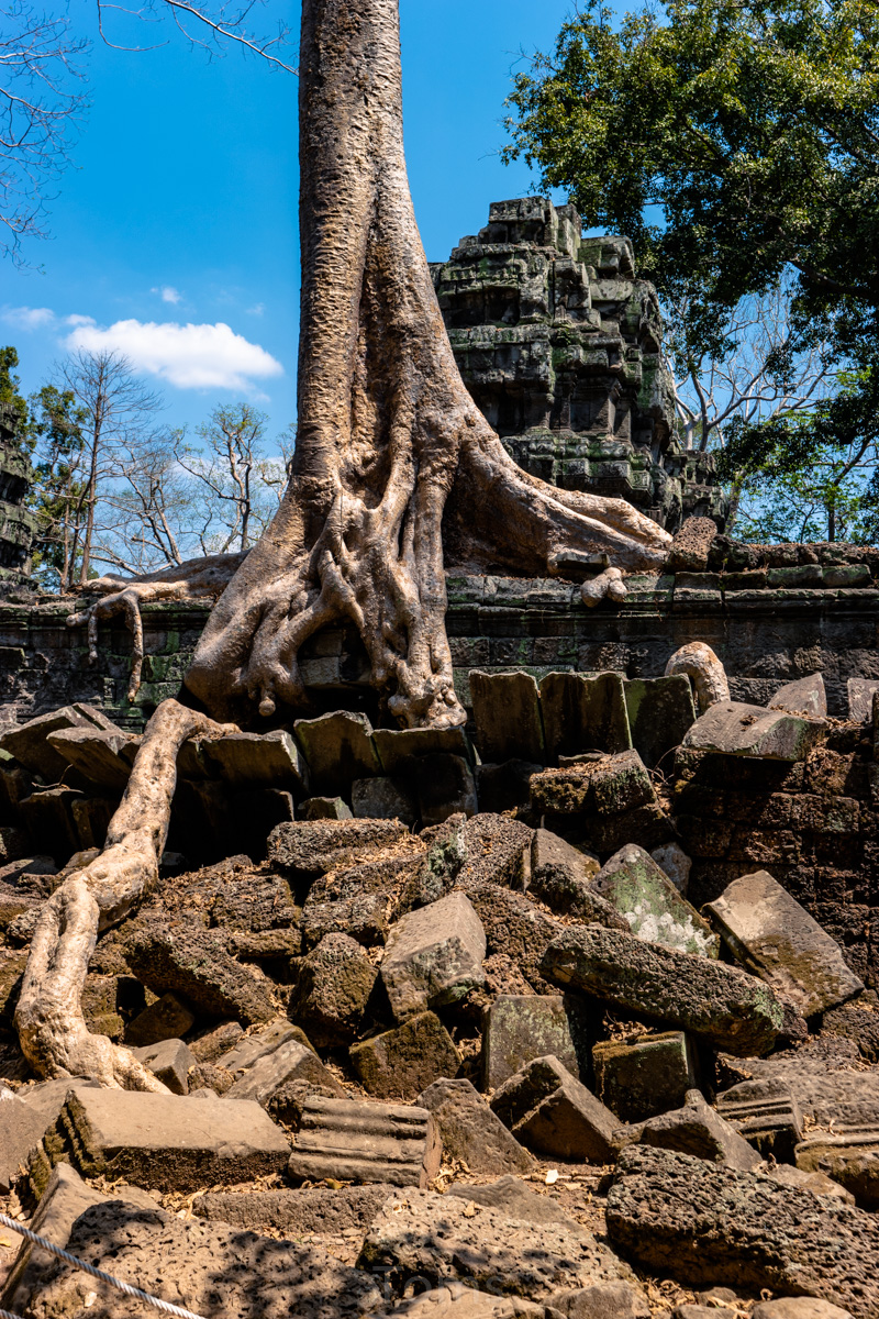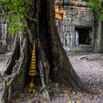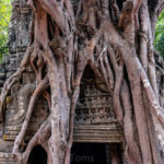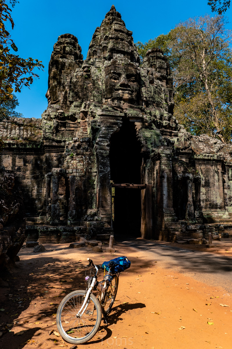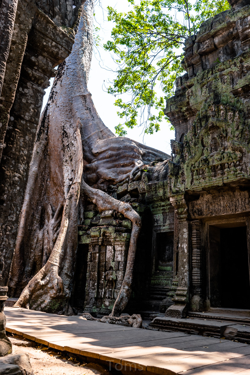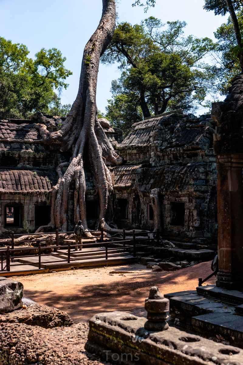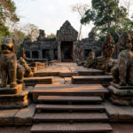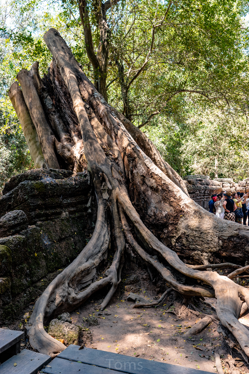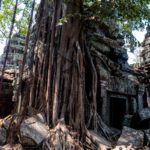 Oto i główny cel, dla którego przyjeżdża się do Siem Reap i w ogóle do Kambodży. Legendarny kompleks świątyń dawnego imperium Angkor… Mam nadzieję, że zdjęcia, choćby w minimalnym stopniu, oddadzą majestatyczność świątyń, ale i nieustępliwość czasu, który je nadkruszył i natury, która się w nie wdarła… Ja mam dodatkowo to szczęście, że tłumy, przetaczające się przez Angkor Thum (lub Thom, jak kto woli, w granicach którego znajduje się słynna świątynia Angkor Wat) są nieco mniejsze – efekt koronawirusa…