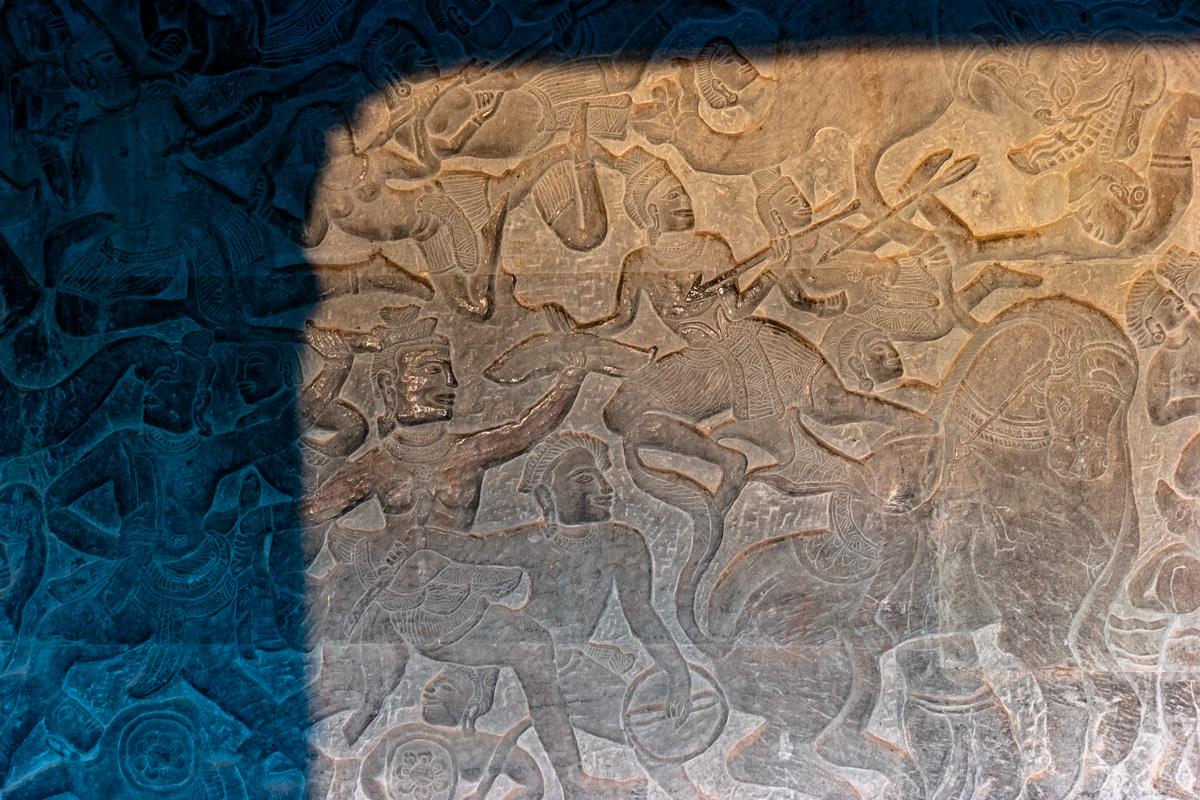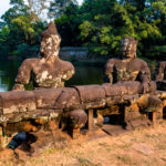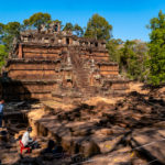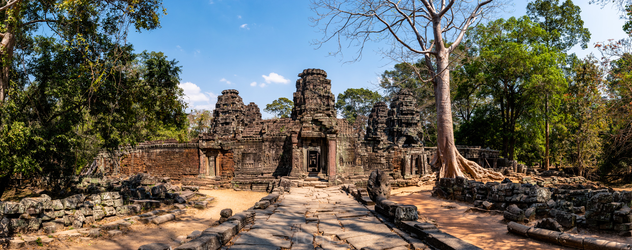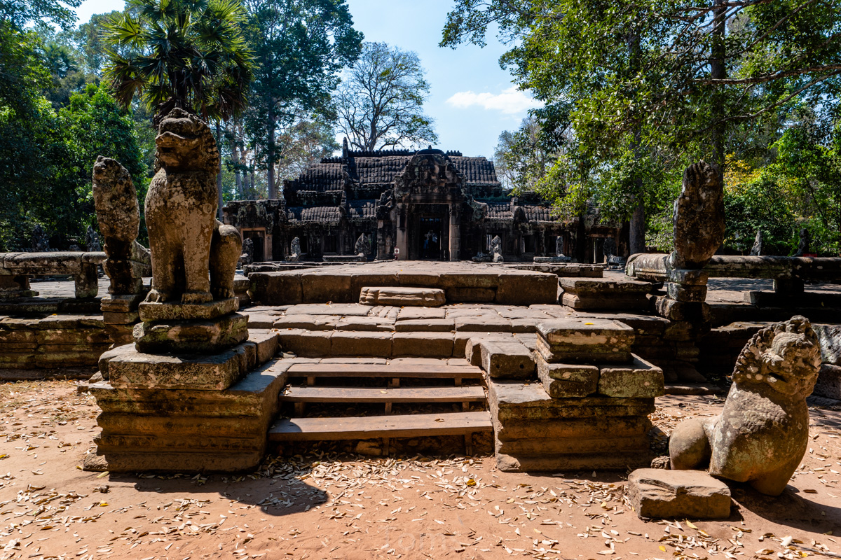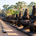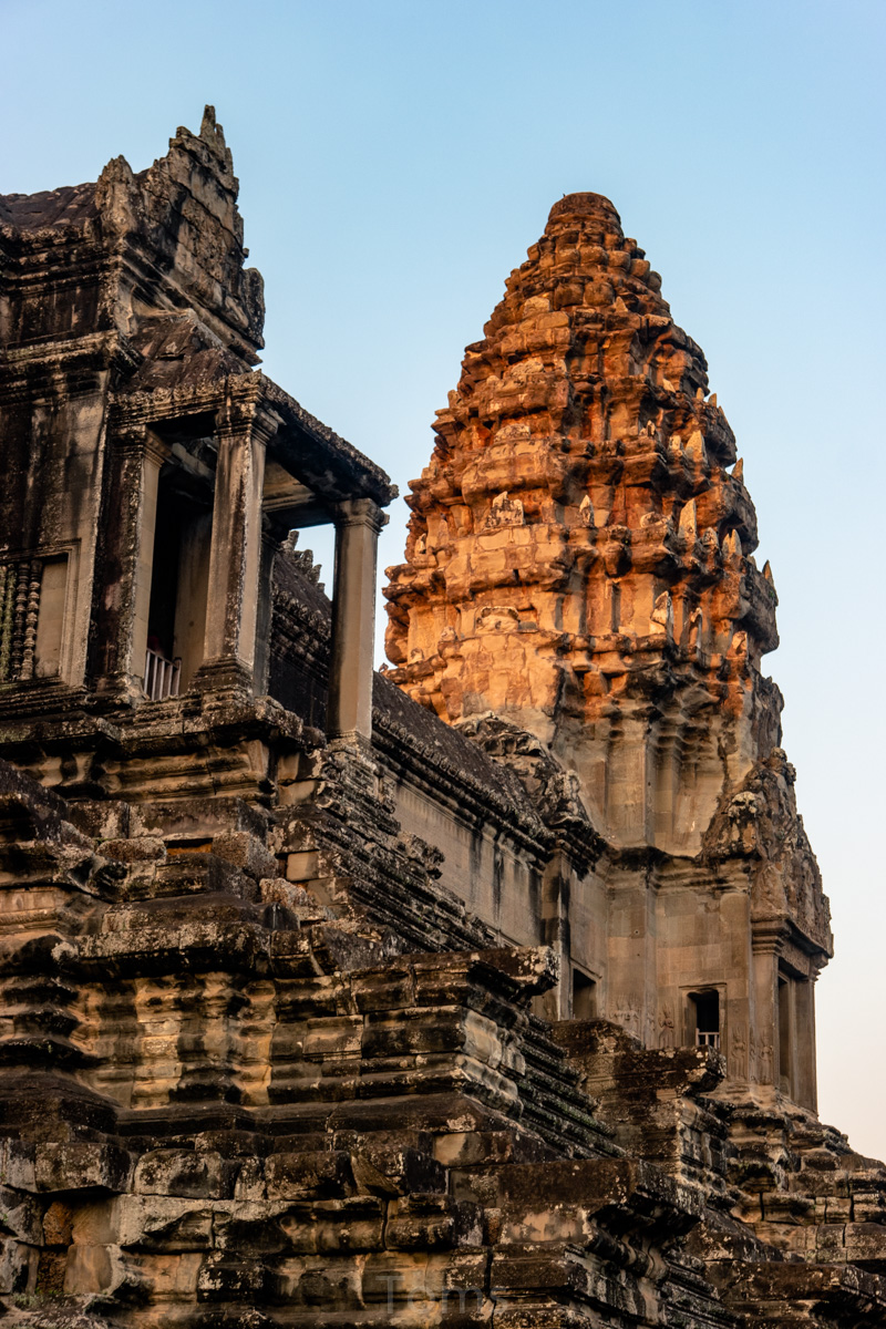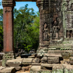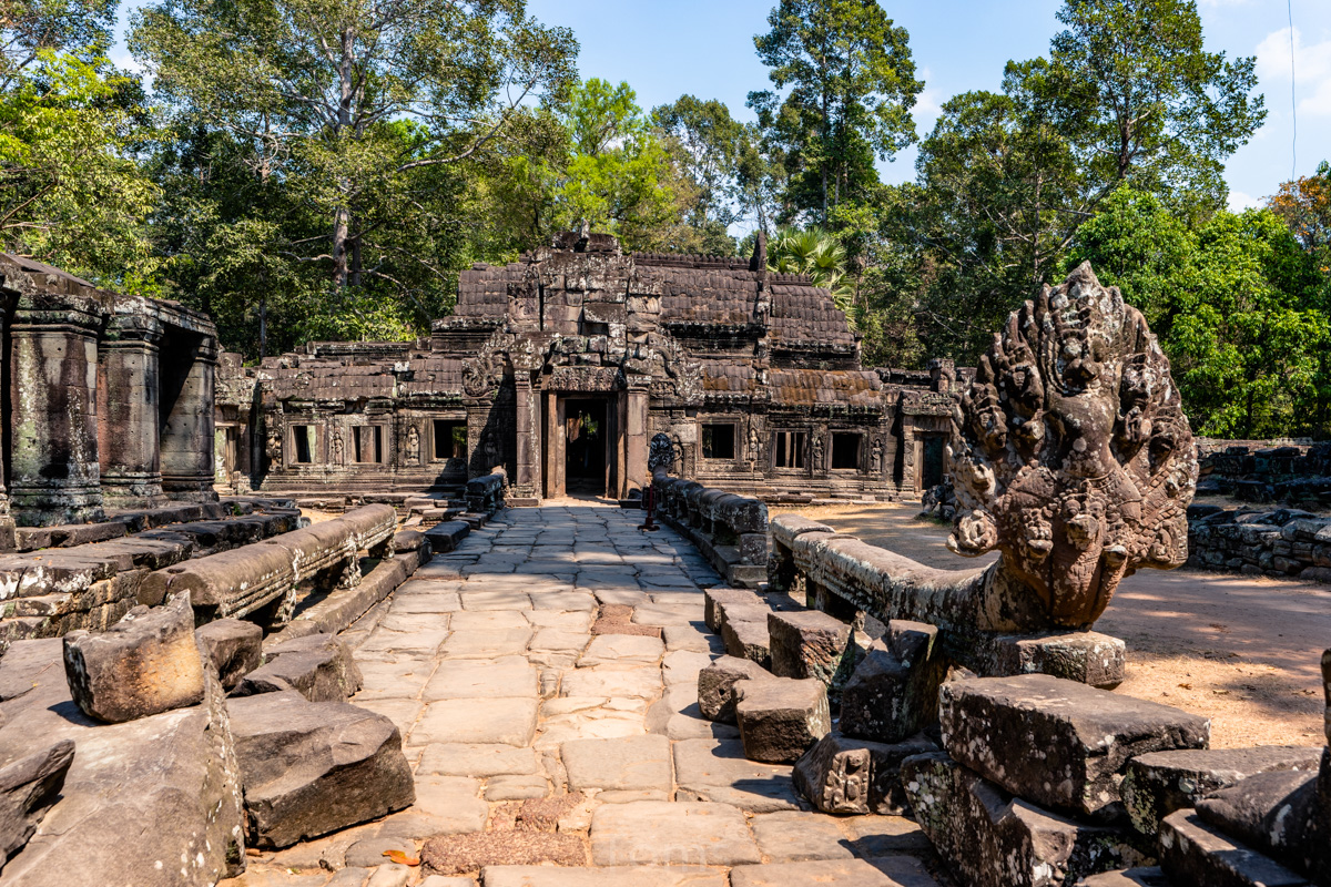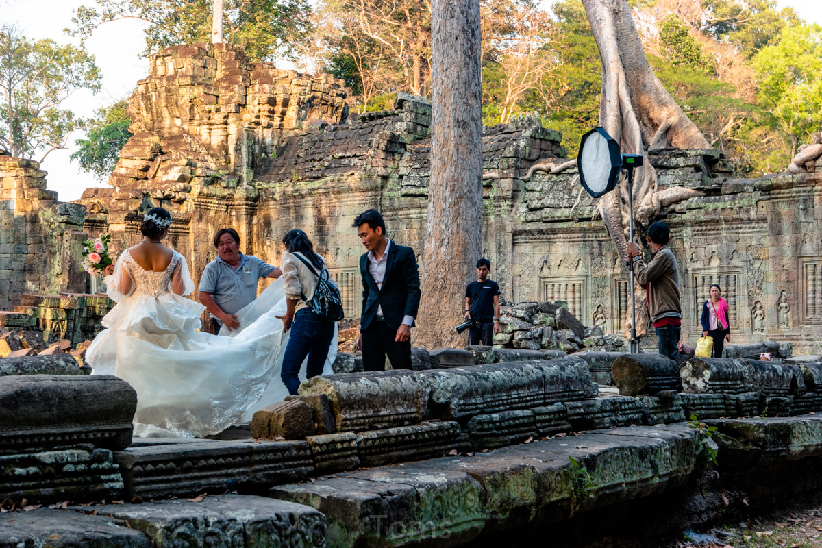 Oto i główny cel, dla którego przyjeżdża się do Siem Reap i w ogóle do Kambodży. Legendarny kompleks świątyń dawnego imperium Angkor… Mam nadzieję, że zdjęcia, choćby w minimalnym stopniu, oddadzą majestatyczność świątyń, ale i nieustępliwość czasu, który je nadkruszył i natury, która się w nie wdarła… Ja mam dodatkowo to szczęście, że tłumy, przetaczające się przez Angkor Thum (lub Thom, jak kto woli, w granicach którego znajduje się słynna świątynia Angkor Wat) są nieco mniejsze – efekt koronawirusa…