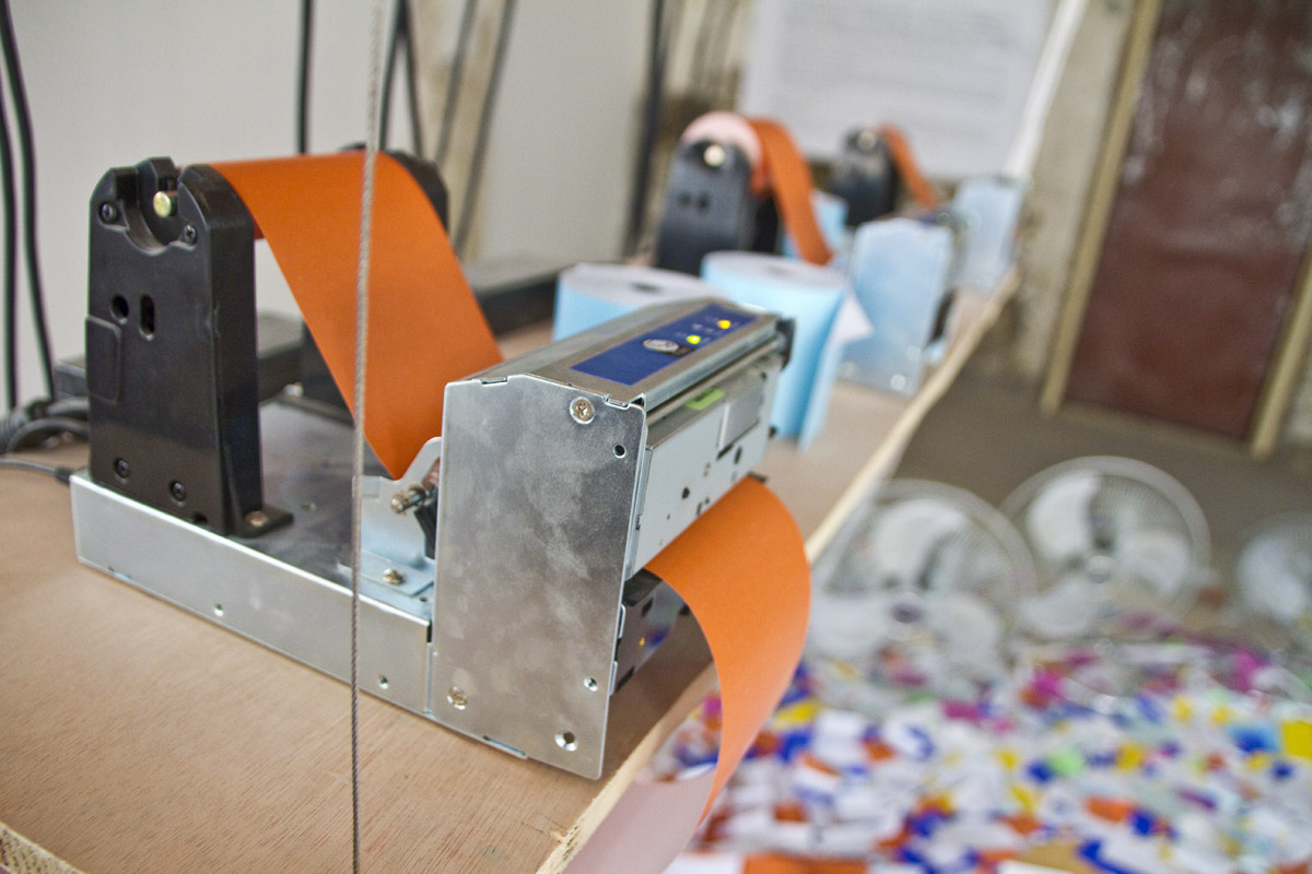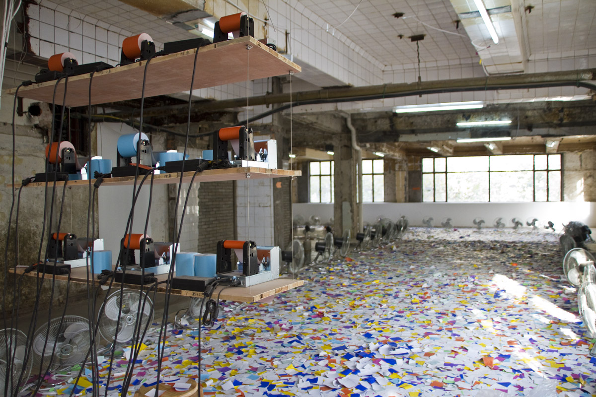 Z fabryki, którą wizytowaliśmy w poprzednim tzw. poście, przenosimy się do opuszczonych budynków byłych galerii handlowych w centrum miasta. Wiatr hula po odrapanych wnętrzach, skutecznie zmniejszając frekwencję do bardzoj znośnych rozmiarów. Pomieszczenia lub całe piętra podzielono wg klucza “miastowego” – w jednym miejscu mamy Mexico City, w innym Ułan Bator itp. Czasami ma to sens, czasami żadnego. Niektórym być może pomaga się zorientować w topografii galerii, muzeów i innych miejsc, które goszczą biennale.