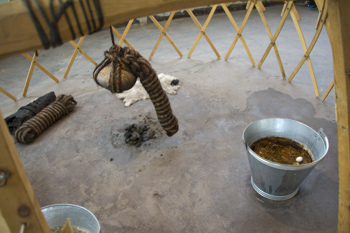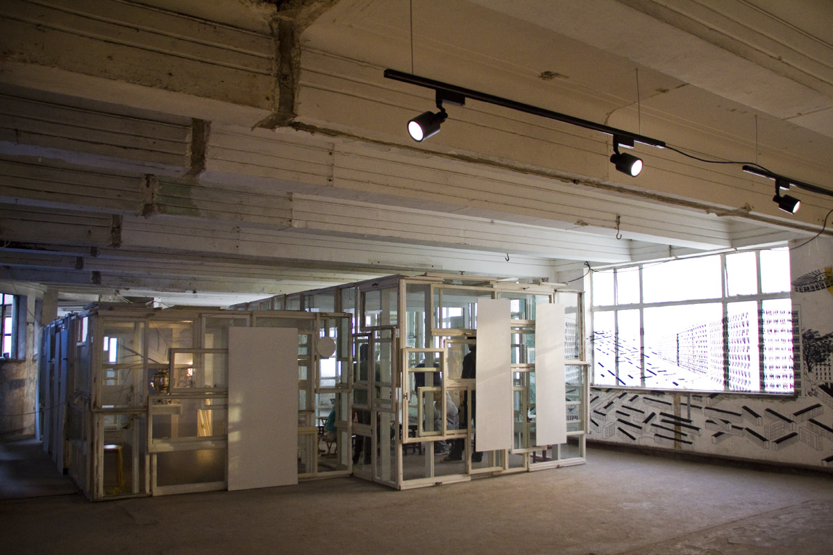 We move from the factory that we were visiting last time to abandoned buildings that used to be malls, located in the centre of the city. Cold wind is howling in somewhat mismaintained interiors, reducing crowds of spectators to acceptable numbers. The exhibition has been divided using city key, i.e. we have rooms/floors named Mexico City or Ulan Batar etc. Sometimes it makes sense, sometimes not that much. I guess it’s helpful for those who feel lost in the immense topography of places where the Biennial is held.