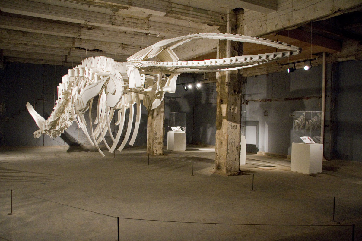 Co do samej zawartości – bardzo zawiodłem się na malarstwie, którego przede wszystkim mało a jak już jest, to bywa żenujące (sala Ułan Bator), choć bywają nastrojowe wyjątki (wariacje typograficzne autorstwa Alirezy Astaneh). Sporo łatwego do zapomnienia wideo, dużo ciekawych obiektów (np. zdobywca nagrody dla najchętniej fotografowanego dzieła – styropianowa rzeźba Thomasa Strickera), jedna wielka lodówka (Shen Shaomin), szkielet wieloryba (w skali 1:1) z plastikowych krzeseł (ech…) a także wielka wyprzedaż pamiątek po amerykańskiej rodziniem, której nazwiska zapomniałem, a która przez dziesięciolecia nabywała produkty koreańskie (m.in. wojując w Korei właśnie) czy chińskie, które teraz, po długiej podróży wracają do kraju pochodzenia…