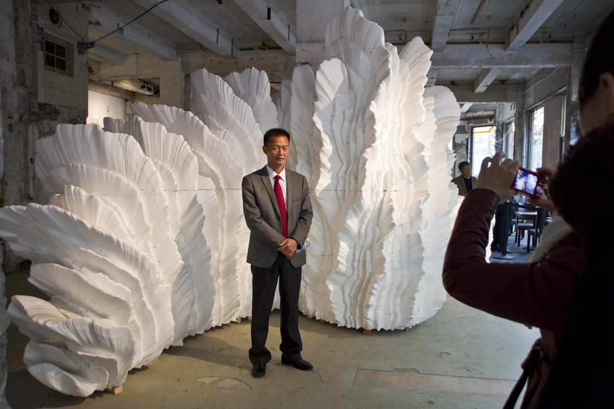 Another interesting “reconstruction” is “Antarctica World Passport Delivery Village” by Lucy + Jorge Orta – it is an imaginary place of happiness free from boundaries, especially those administrative ones. All built using scrap material but not excessively demonstrative of its nature. The couple exhibits one more installation called “Orta Water – Purification Station”, a daring project of treating Huangpu river water and testing its palatability directly on the spectators. Looking through the window at the grey of the river, I must admit I am full of doubt…