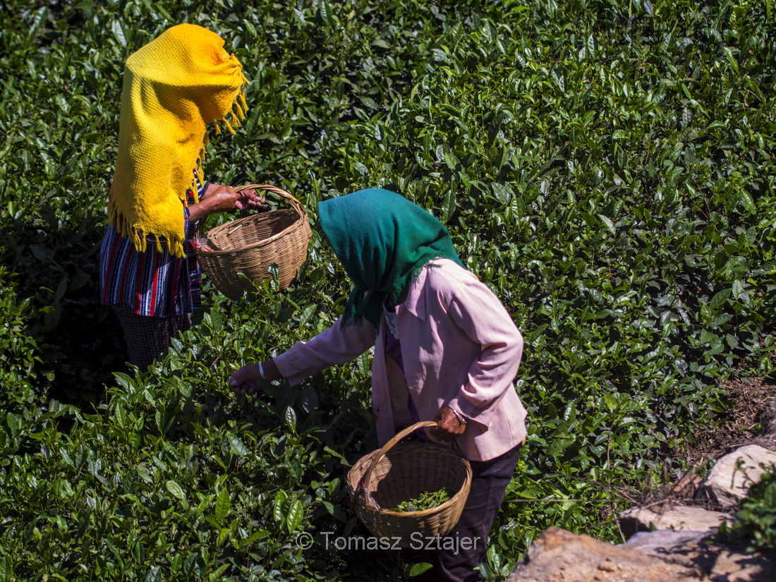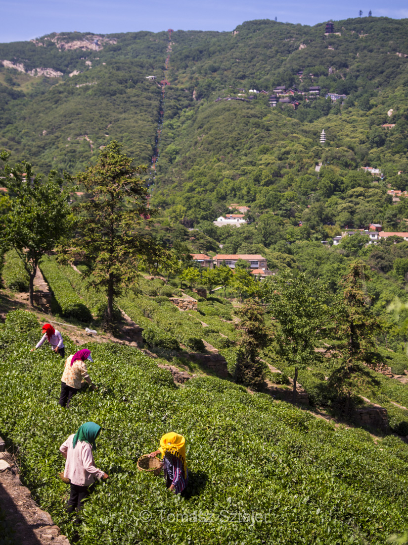 In case you were wondering, the park IS NOT worthy a visit. And definitely not for the ticket price (100RMB). I think this moment marks officialy the beginning of my campaign against the disgusting Chinese greed in terms of draining tourists of their money… Not only the price you have to pay for entering just about any place is always way too elevated, especially compared with local average salary, but it keeps increasing at an absurd pace. Just take a tour around the neighbour countries and you will find that tickets to access some of the finest attractions are 5-10 less costly than in China. Are Chinese attractions 5-10 more awesome than any other? I don’t think so. What is more, in China very often the “ancient” architecture is “recreated” with no respect for the original work (check out the Great Wall of China, rebuilt much wider to accomodate more tourists walking up and down). Fake temples, fake rocks, new “old” borrroughs built everywhere… In Huaguoshan, for example, we have a fake waterfall, fake monks trying to extrude some cash from you, a photo with a monkey in a cage (though officially the government condemns the cruelty blah blah blah). Enough. Look at the photos if you please but AVOID the place. Any bright spots? Maybe the colorfully dressed, hard-working women picking tea leaves on the way.