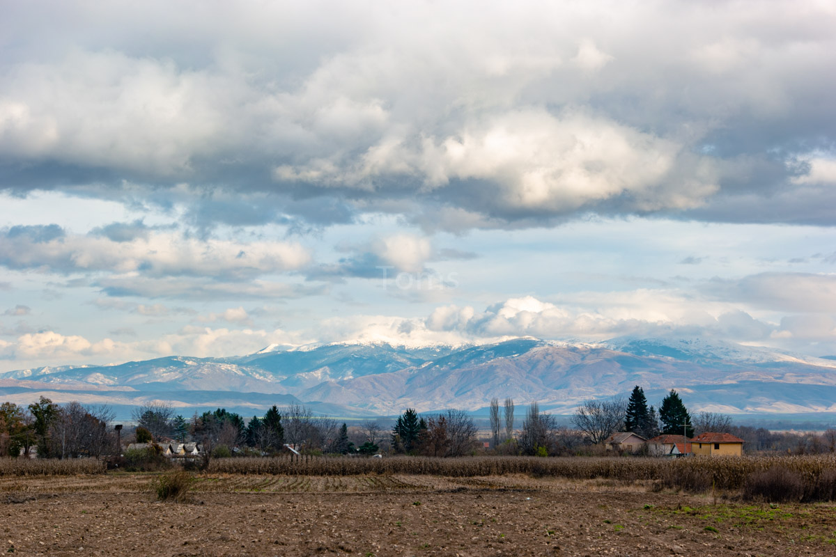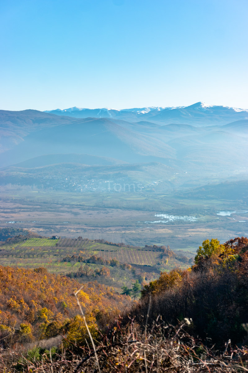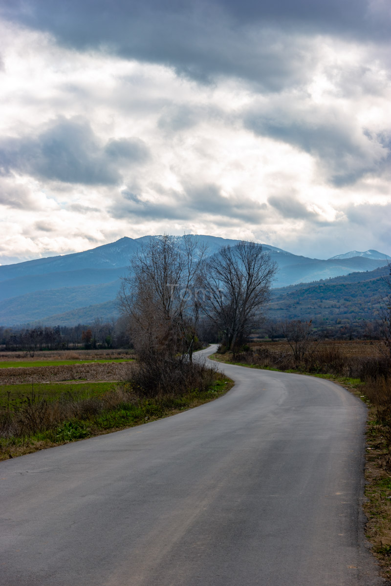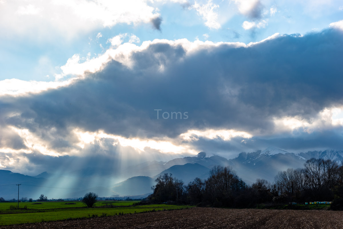 Zaufawszy apkom i ich mapkom, próbuję przekroczyć granicę tam, gdzie przejścia już dawno nie ma. Zaraz podjeżdża jeep a w nim… w połowie macedońska a w drugiej połowie polska obsada straży granicznej. Uprzejmie tłumaczą, którędy do właściwego przejścia… I powiadają o tym, że tędy przebiega szlak uchodźczy, więc patroli tu sporo. Nadłożyłem kawał drogi, ale słońce i chmury wynagradzają mi mój trud, tworząc wielowątkowe plastyczne prezentacje wokół pobliskich wzniesień.