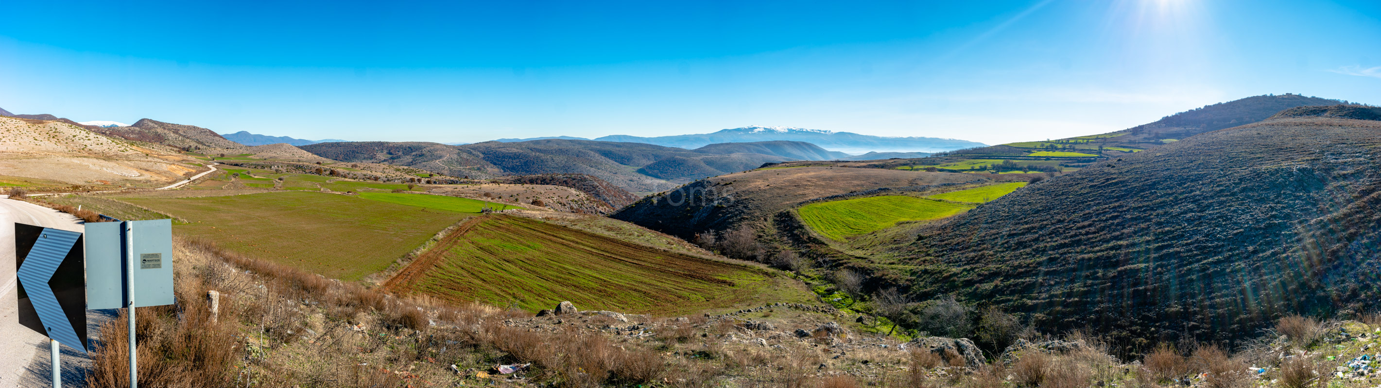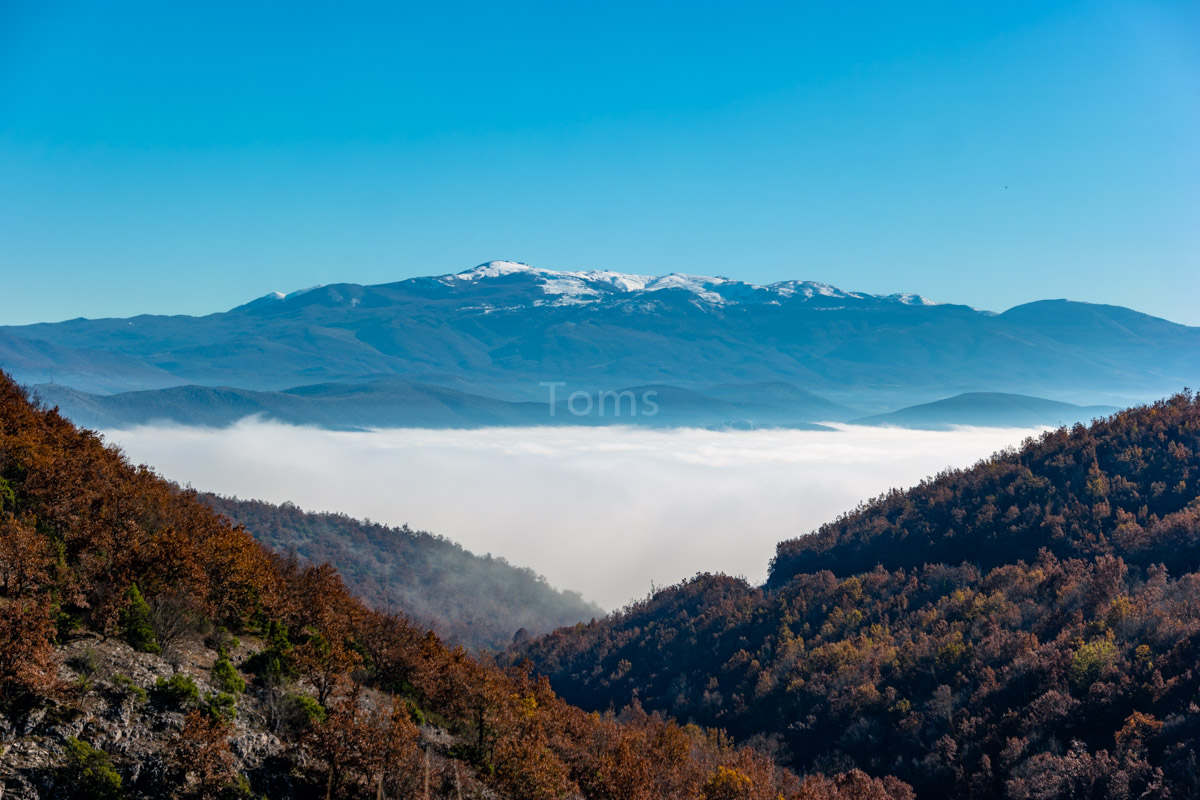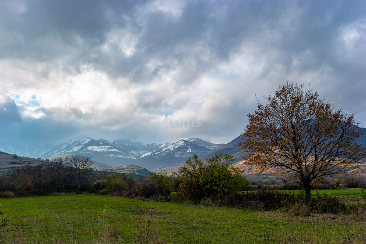 Zaufawszy apkom i ich mapkom, próbuję przekroczyć granicę tam, gdzie przejścia już dawno nie ma. Zaraz podjeżdża jeep a w nim… w połowie macedońska a w drugiej połowie polska obsada straży granicznej. Uprzejmie tłumaczą, którędy do właściwego przejścia… I powiadają o tym, że tędy przebiega szlak uchodźczy, więc patroli tu sporo. Nadłożyłem kawał drogi, ale słońce i chmury wynagradzają mi mój trud, tworząc wielowątkowe plastyczne prezentacje wokół pobliskich wzniesień.