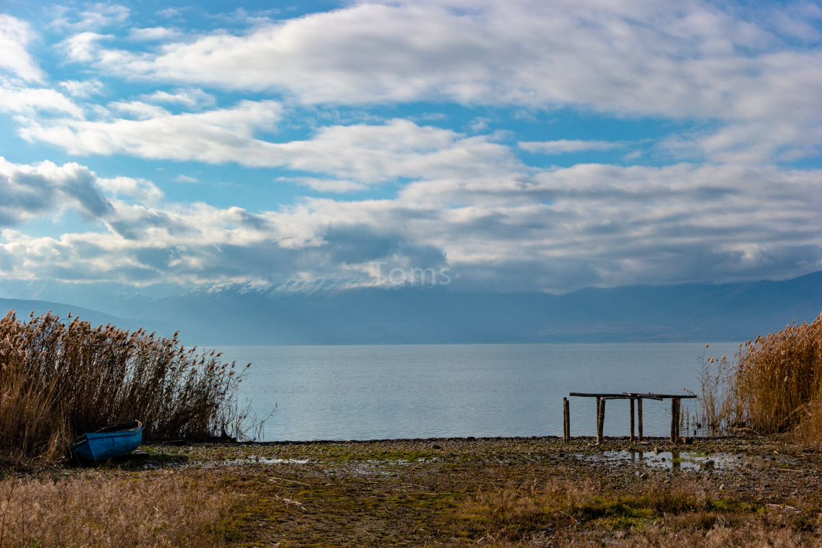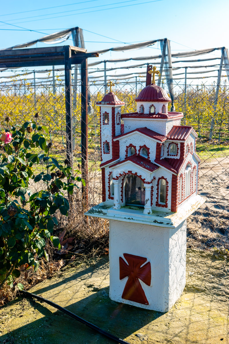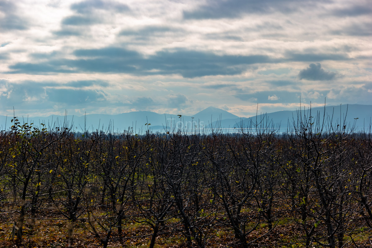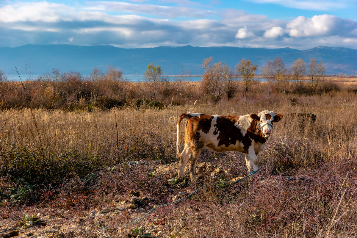 After returning to Ohrid (btw, the road between Skopje and Ohrid provides quite some views!) I hop back on my bike and cycle in the direction of Greece. I make a little stop on the way at Prespa lake, so peaceful and calm this time of the year… And I pick up a few apples from local gardens…