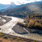 Na trasie od Tirany do granicy macedońskiej robi się malowniczo, zwłaszcza za Elbasan… Trochę surowo, jesiennie, ale słońce wciąż przyjemnie rozpływa się po wzniesieniach i migocze na coraz bardziej zmarzniętej powierzchni meandrującej rzeki… Zima czai się za rogiem…