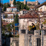 Samo miasto warte jest zwiedzenia i doświadczenia jego wąskich uliczek, bardzo śródziemnonadmorsko wyglądającej architektury (choć to przecież jezioro, a do morza kawał drogi!), jest nawet forteca i amfiteatr… I te widoki na błękit wody i góry w tle… Na pewno warto wrócić tu w sezonie i powłóczyć się wzdłuż wybrzeża, może ogarnąć jakiś trekking?
