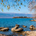Na granicy ostrzegają mnie o śniegu na trasie. Postanawiam im nie wierzyć. I tą niewiarą udaje mi się trochę śniegu roztopić, ale tylko trochę. Co jakiś czas rozcieram zmarznięte palce i jadę dalej. Nad jezioro dojeżdżam od strony Strugi – miasteczka starającego się przybrać kurortowy wyraz twarzy, choć wszędzie dookoła wypływa barwny albański chaos… Bo tu wszystko albańskie jest, łącznie z powiewającymi dookoła flagami. Później się jeszcze nasłucham o podziałach i absolutnym braku zaufania Macedończyków do Albańczyków i vice versa…