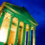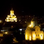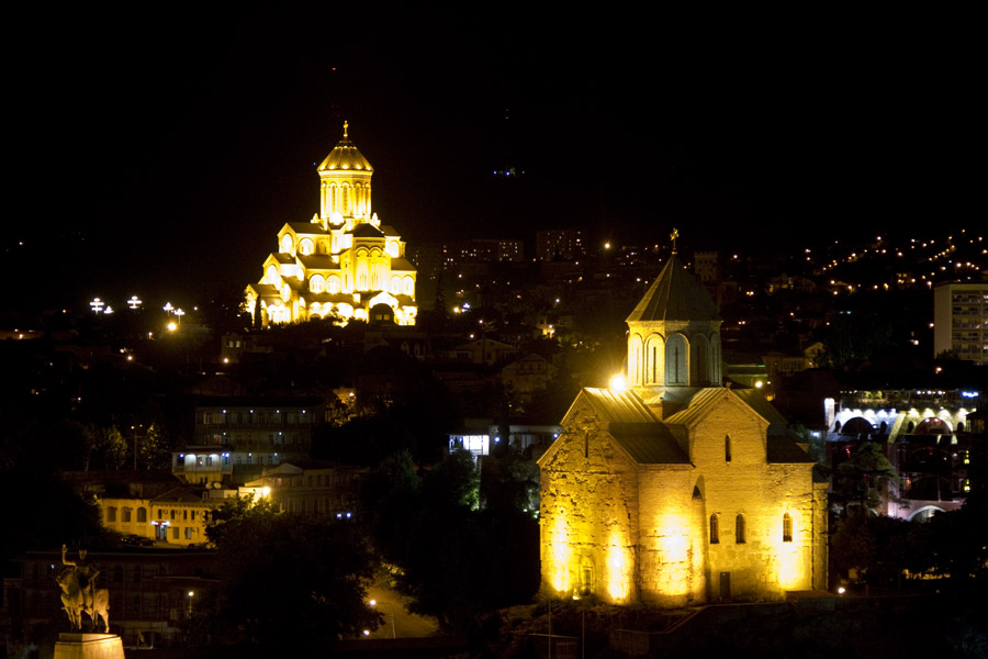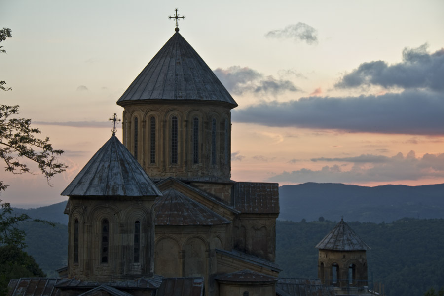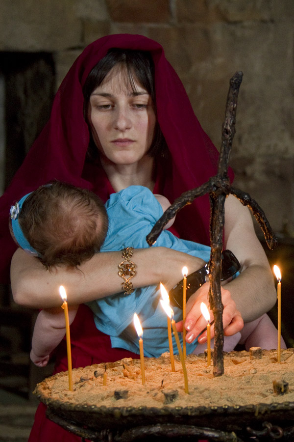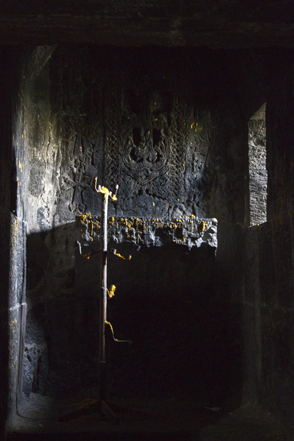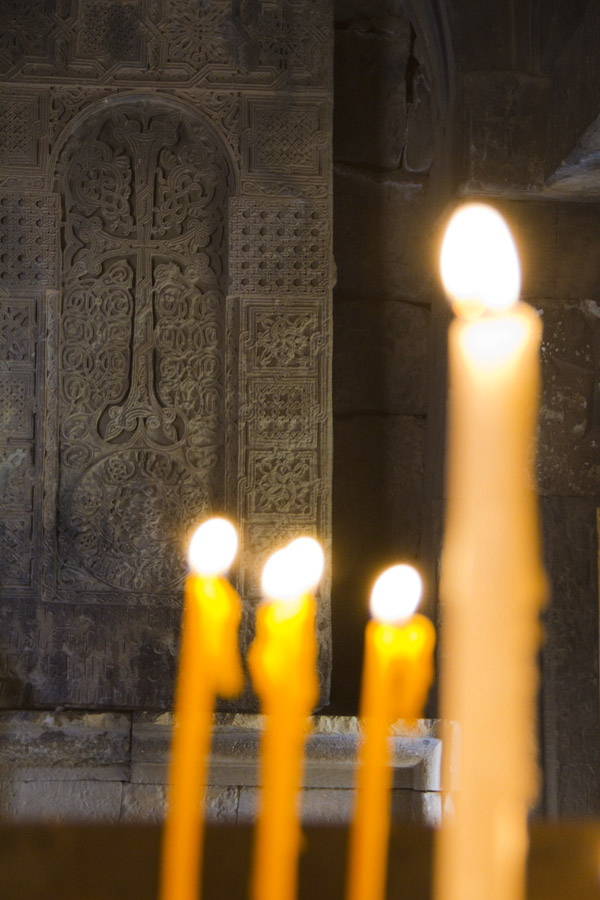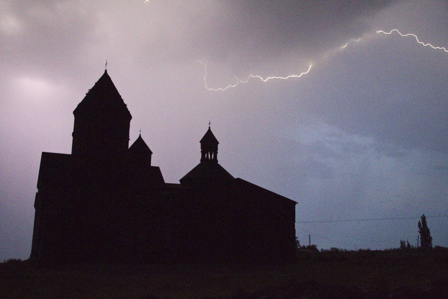 Na informację o naszej polskości państwo biletowi reagują natychmiastową zniżką i zezwoleniem na rozbicie namiotu w świątynnym parku (w miejscu zaiste luksusowym, bo choć toalety od wielu lat niesprzątane, to tuż obok mamy betonowy basen – z wodą tak zimną, że zanurzenie się w niej jest nie lada wyczynem). Wieczorem fasada podświetlana jest na rozmaite kolory, w tle szumi wiatr i gra nastrojowa muzyka z poutykanych tu i ówdzie głośników… W tych pięknych okolicznościach zostajemy odwiedzeni przez przyszłego króla Armenii, obecnie ucznia elitarnej szkoły średniej w Walencji, który opowiada nam o tym, co zrobi swojej ojczyźnie jak już dojdzie do władzy, my zaś dzielimy uwagę między jego opowieści a pyszny szaszłyk przyrządzony przez króla i jego świtę…