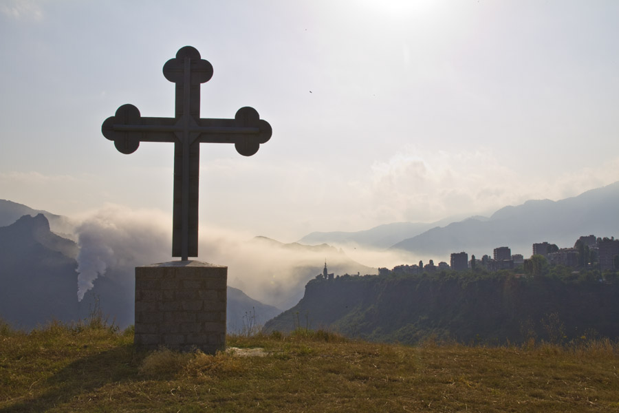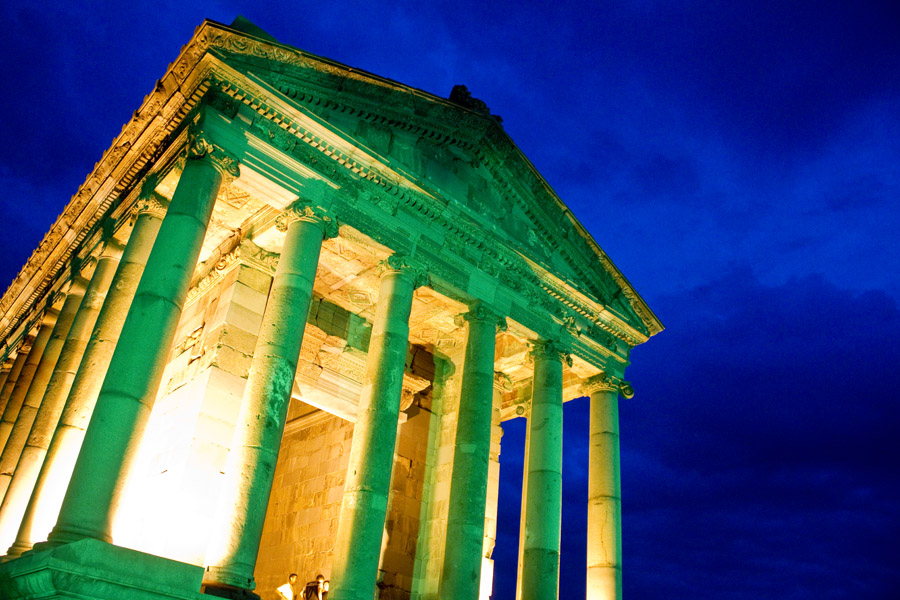 Mimo wspaniałości wszystkich zwiedzanych kościółków, przy dziesiątym (a może już setnym?) zaczynamy odczuwać pewne znużenie tym tematem… Całe szczęście, na zakończenie dnia trafia się nam budowla hellenistyczna – świątynia Minerwy w Garni (dojazd nie należy do najłatwiejszych, ze względu na nieistniejące oznakowanie i problemy z orientacją przestrzenną u miejscowych zagajonych o drogę; najbardziej malownicza wskazówka od przypadkowego przychodnia brzmiała mniej więcej tak: priama, priama ile wleziot).