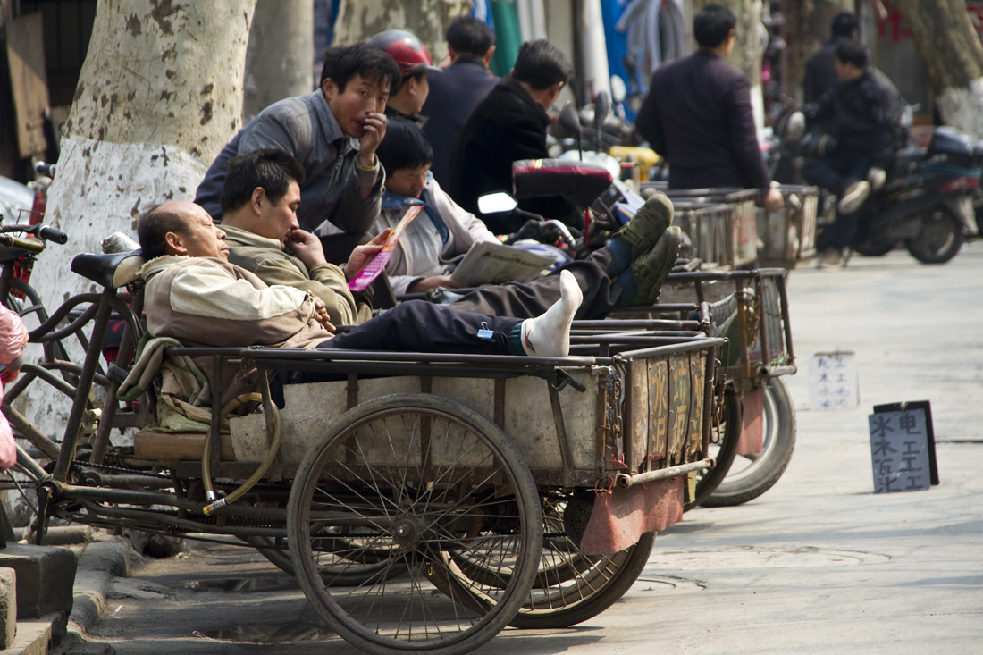 W Zhenjiang mam rozmowę kwalifikacyjną (z roboty nic ostatecznie nie wyjdzie ale nie ma nad czym rozpaczać), na którą docieram w idealnym momencie. Elegancka knajpa, salon dla VIP-ów, suto zastawione stoły, na ścianie wielka plazma. Wchodzę i witam się z tak ważnymi i dzianymi osobistościami, że aż nie jestem w stanie tego pojąć (i nawet nie próbuję), a spiker w TV anonsuje kolejny news – katastrofę kolejową w Polsce. I już mamy ciekawy temat do rozmów. Polskie koleje vs. chińskie. Ślimak vs. gepard. Ferrari vs. Polonez. Z góry żarcia krążącego po stołach wyskubuję to, co najlepsze, co jakiś czas odpowiadając na pytania o doświadczenie zawodowe, bodaj najważniejsza przy stole Pani VIP kupuje przez komórkę (Iphone ma się rozumieć) nowe auto, przyjazna atmosfera, przyszły-niedoszły pracodawca już jest ze mnie zadowolony a ja go wcale nie wyprowadzam z błędu.