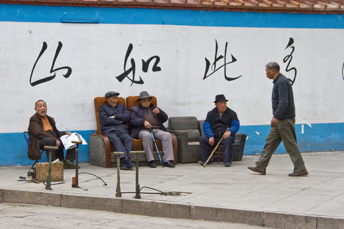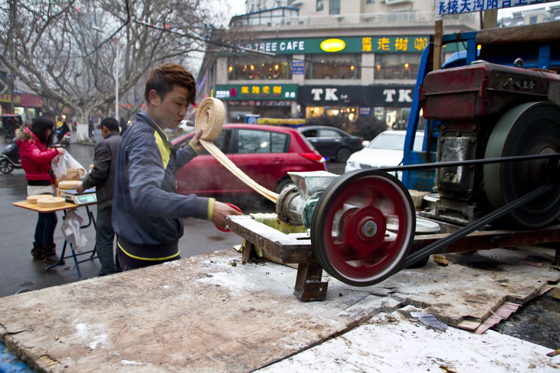 Zanim na dobre dotrę do Szanghaju, czeka mnie jeszcze wizyta w Zhenjiang (patrz wcześniejszy wpis), mieście, które – ze względu na liczbę przyjaciół i znajomych tam pomieszkujących – mógłbym traktować niemalże jak rodzinne. Miasta rodzinne w Chinach mają to do siebie, że lepiej ich nie opuszczać na dłużej niż kilka miesięcy, w przeciwnym wypadku możemy mieć problemy z rozpoznaniem okolicy. Miejsca, które filmowałem w 2010 r. zarosły wieżowcami, parę dzielnic wyburzono, kilka innych wybudowano… Całe szczęście Fei i jego rodzina nie zmienili się zanadto, Cioteczka „Zjedz Troszeczkę” wciąż w formie, Wujaszek „Balonowy Brzuch” wciąż namawia do wychylenia paru kielonków, Fei nadal jest tym samym szalonym artystą, tyle że głowa mu zarosła dżunglą artystycznie zmierzwionych włosów.