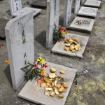 OK, that’s the beautiful story behind it. And what is there left of the tradition? Basically, once a year the whole family gather, they go and sweep tombs together (the tombs are sometimes located somewhat picturesquely in hills out of town, but nowadays more often they are located in public cemeteries) then they all go to a restaurant, order lots of food that later on goes to waste and they drink like crazy (they drink baijiu, the traditional 52% strong alcohol). And then they go and visit another cemetery and then yet another… I don’t remember that many details – the sun, the heat, the smoke, food lying around the tombs, sellers of “paper money” for the dead jumping from one tombstone to the other, trying to make a good deal, baijiu, lots of baijiu. All other details can be found in the photos. Taken with my own shaking hands.